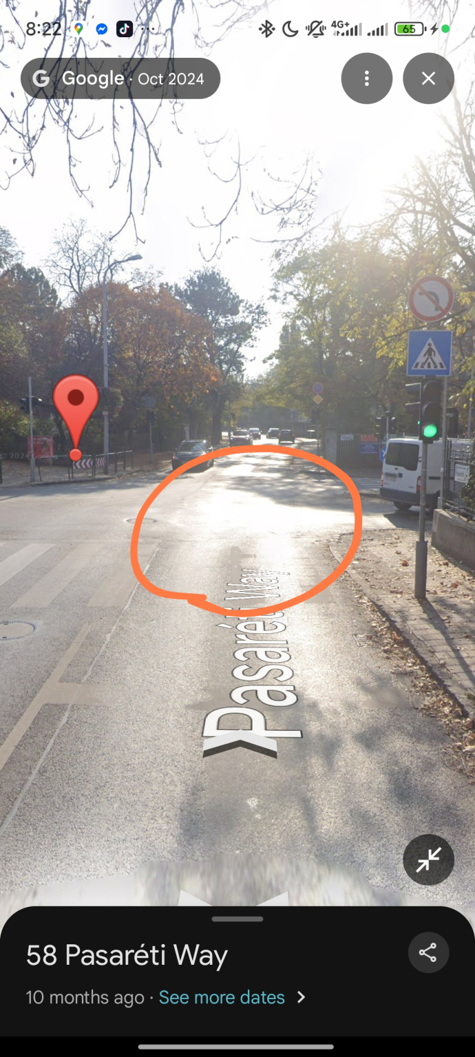 Az elmúlt hetekbe egyre jobban süllyed be az aszfalt, a Gábor Áron utca/Pasaréti út kereszteződésben, város felé vezető oldalán. (A csatolt Google Maps fotón még nem látszik.)