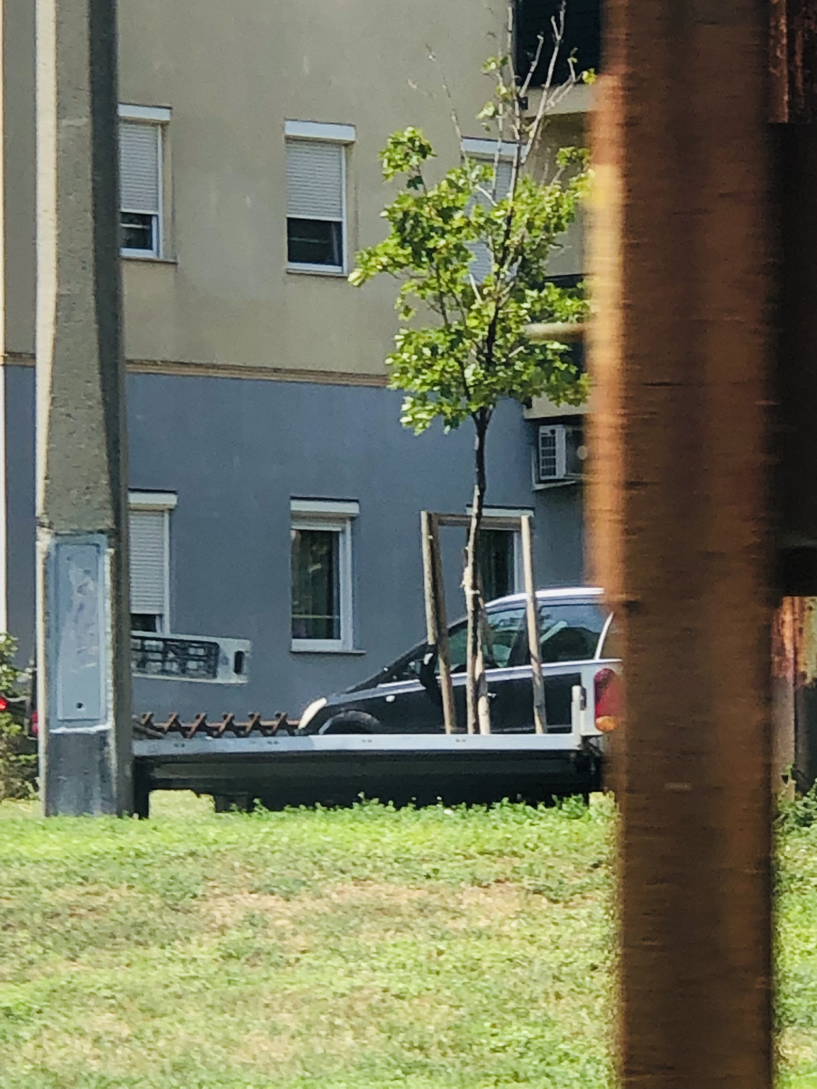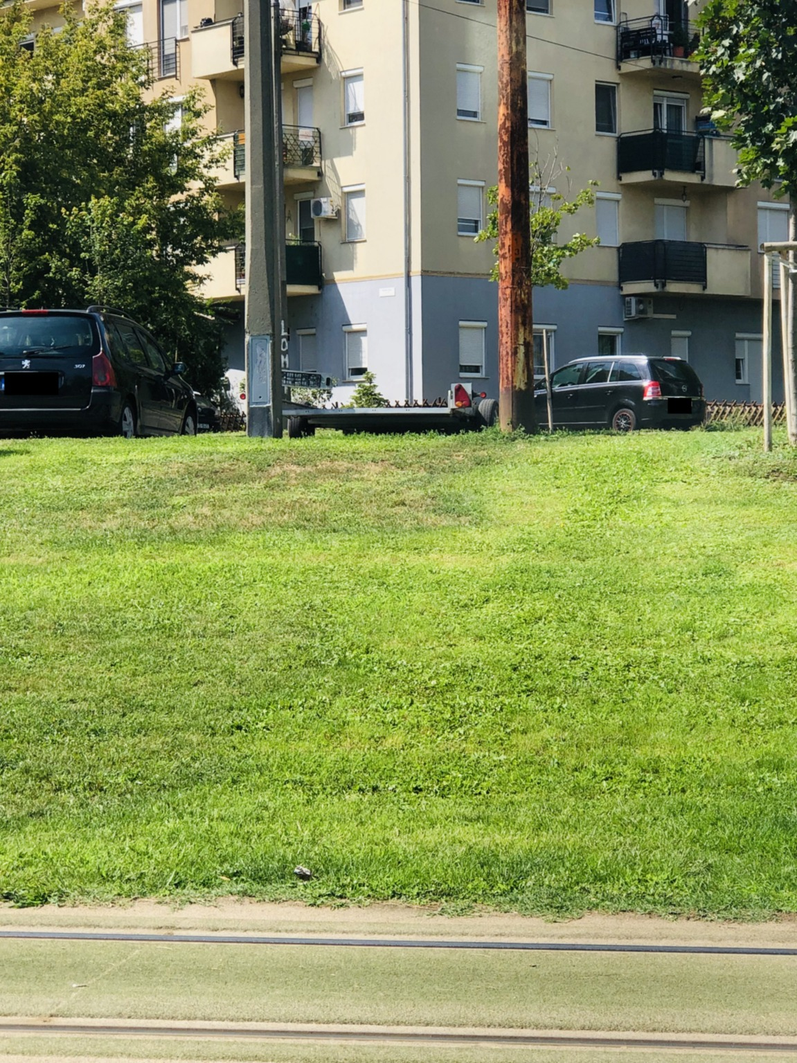 Kérem, a rendszám nélküli utánfutót szállítsák el a parkolóból. A buszmegálló magasságában van.
