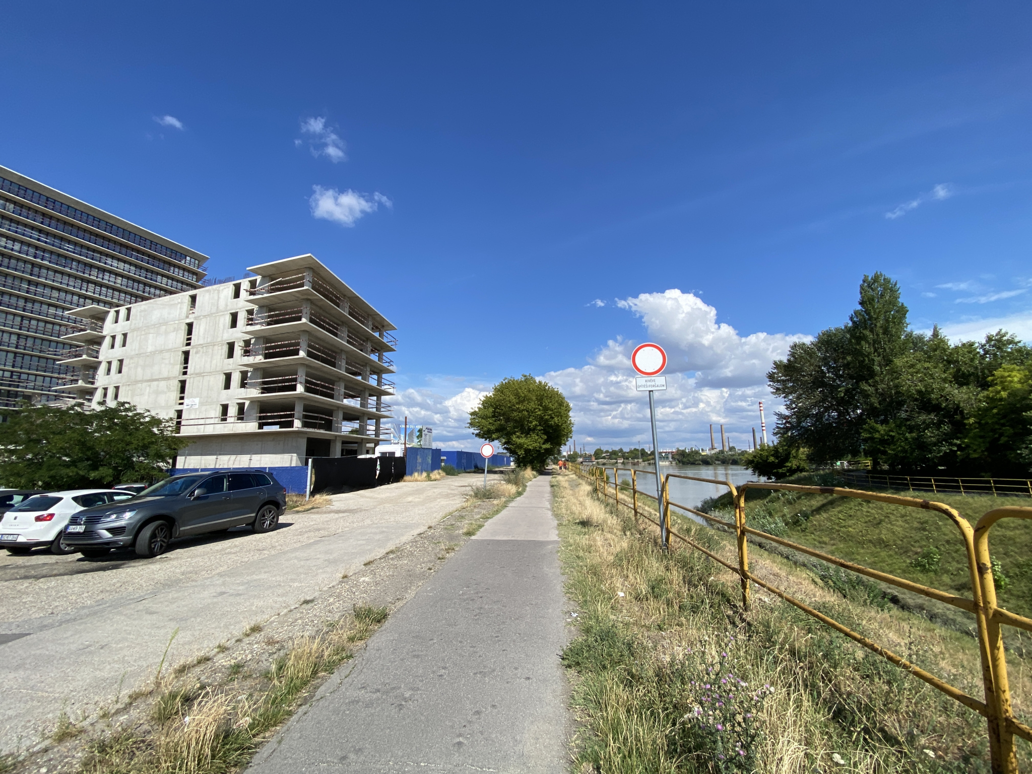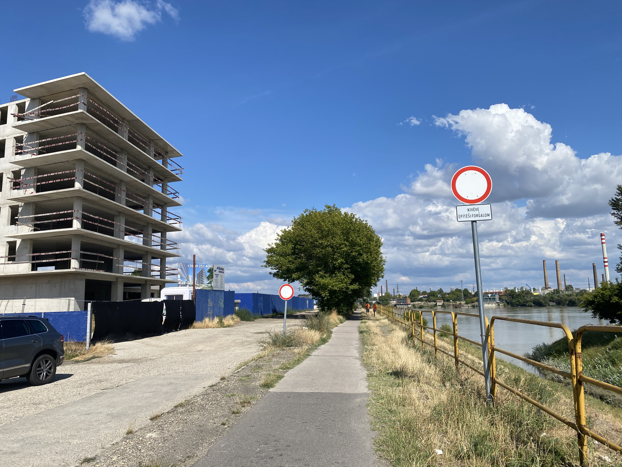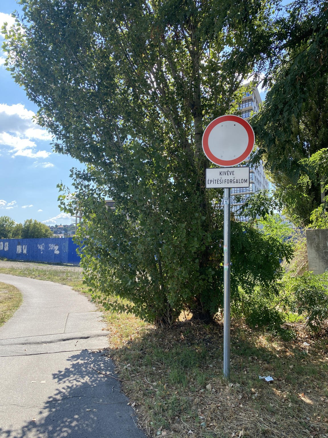 A Budapest, 11. kerületi Fibula utcában, a korábbi Kék-Duna rezidencia építkezés melletti kerékpár úton, mindkét irányból behajtani tilos (kivéve építési forgalom) tábla van évek óta. Az építkezés meglehetősen régen félbeszakadt, építési forgalom ezáltal nincsen. Kérem ezért a felesleges behajtani tilos táblák eltávolítását.