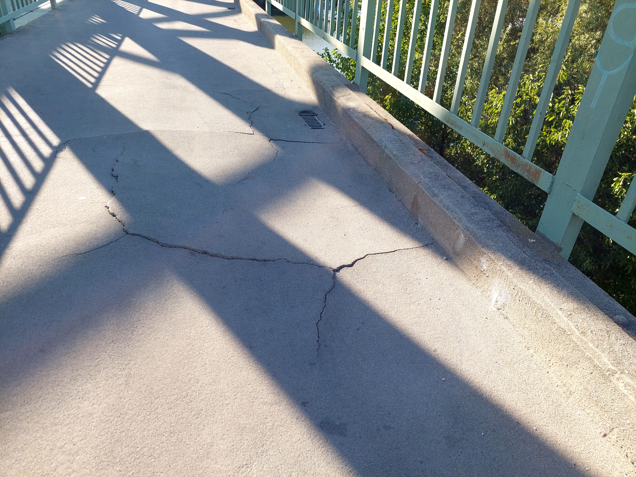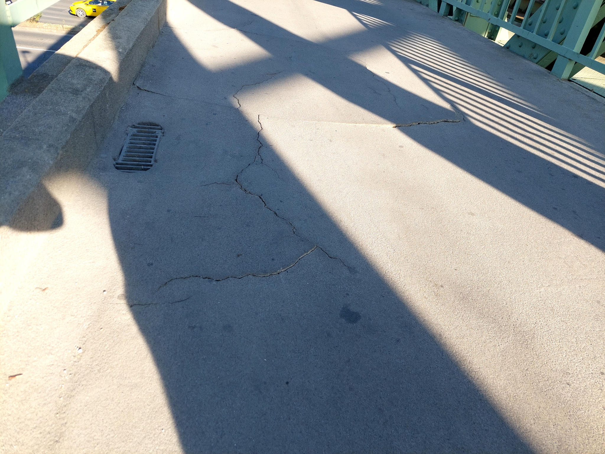 Megsüllyedt a járda az Újpesti Vasúti összekötő hídon.