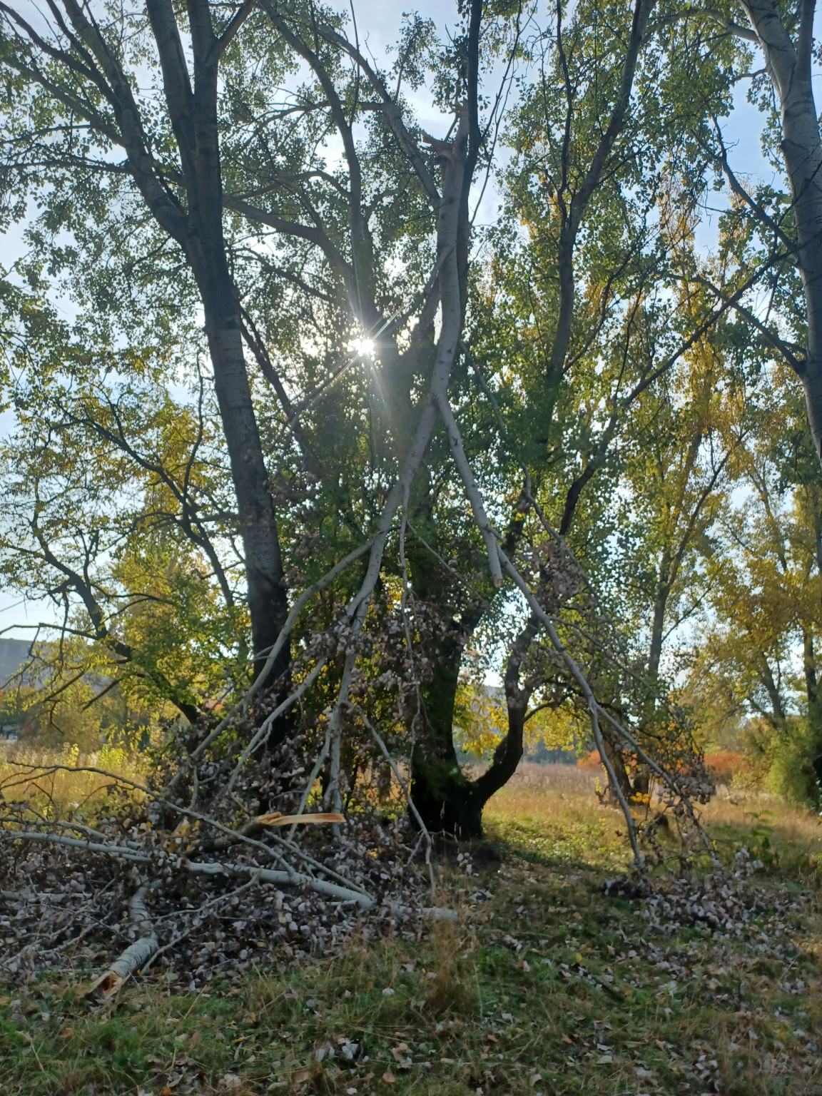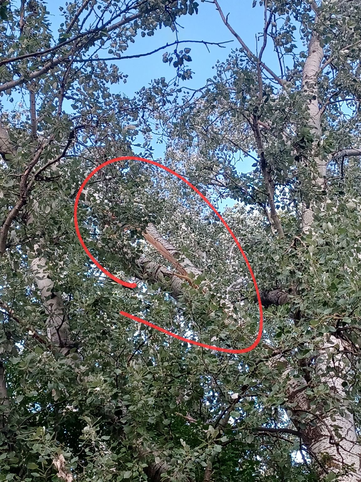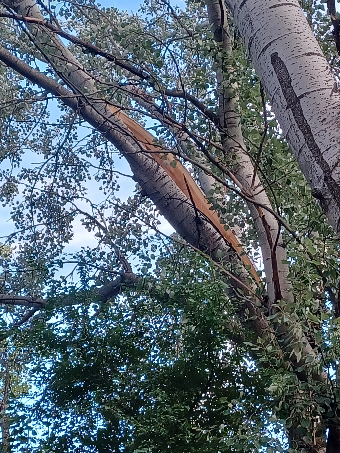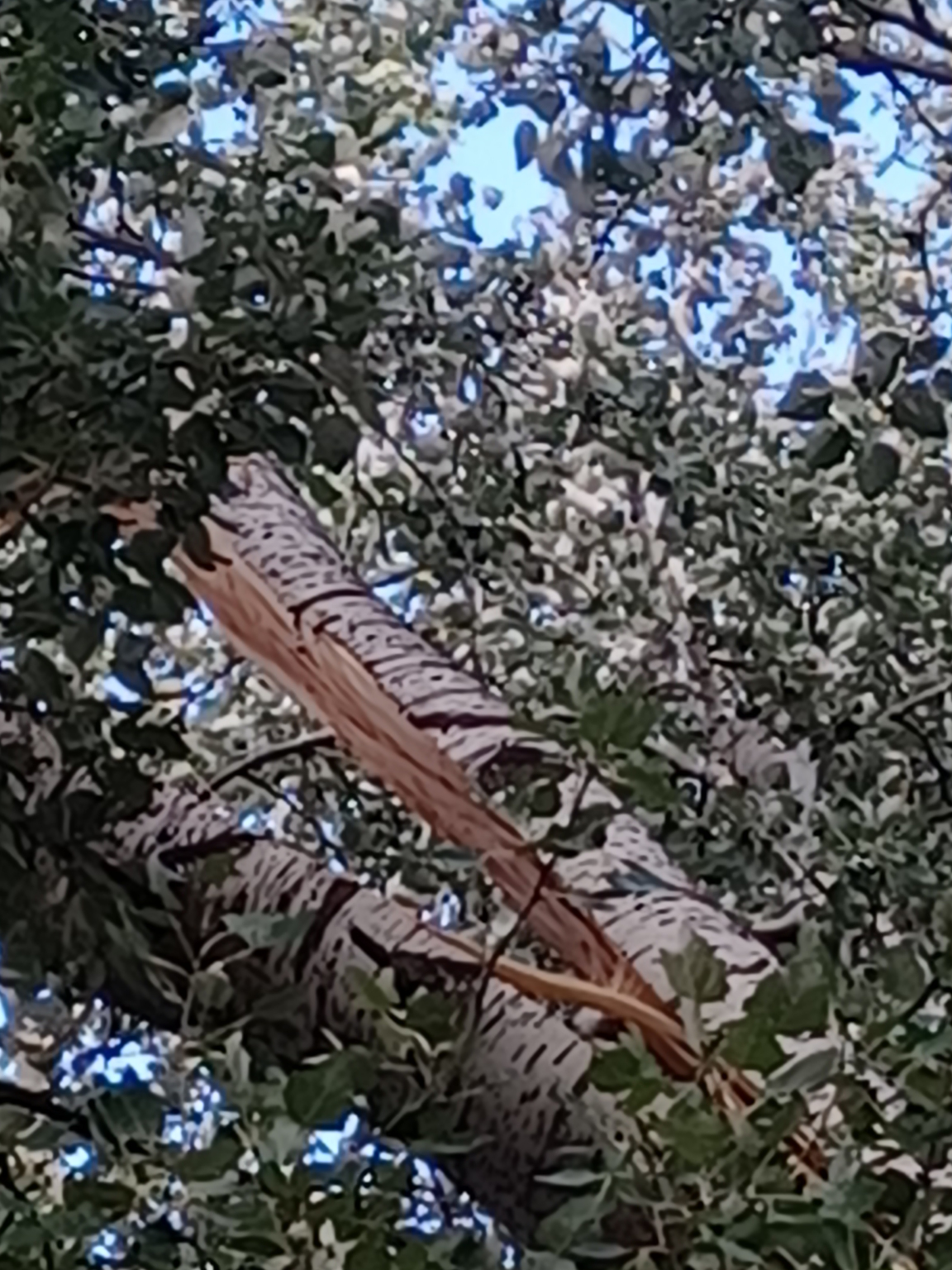 Egy hatalmas fa a viharos időben megsérült, a törzse meghasadt és barmikor lezuhanhat. A fa közelében egy sűrűn használt gyalogos ösvény/út van. Kérem, hogy a veszélyhelyzetet hárítsák el! Köszönöm!