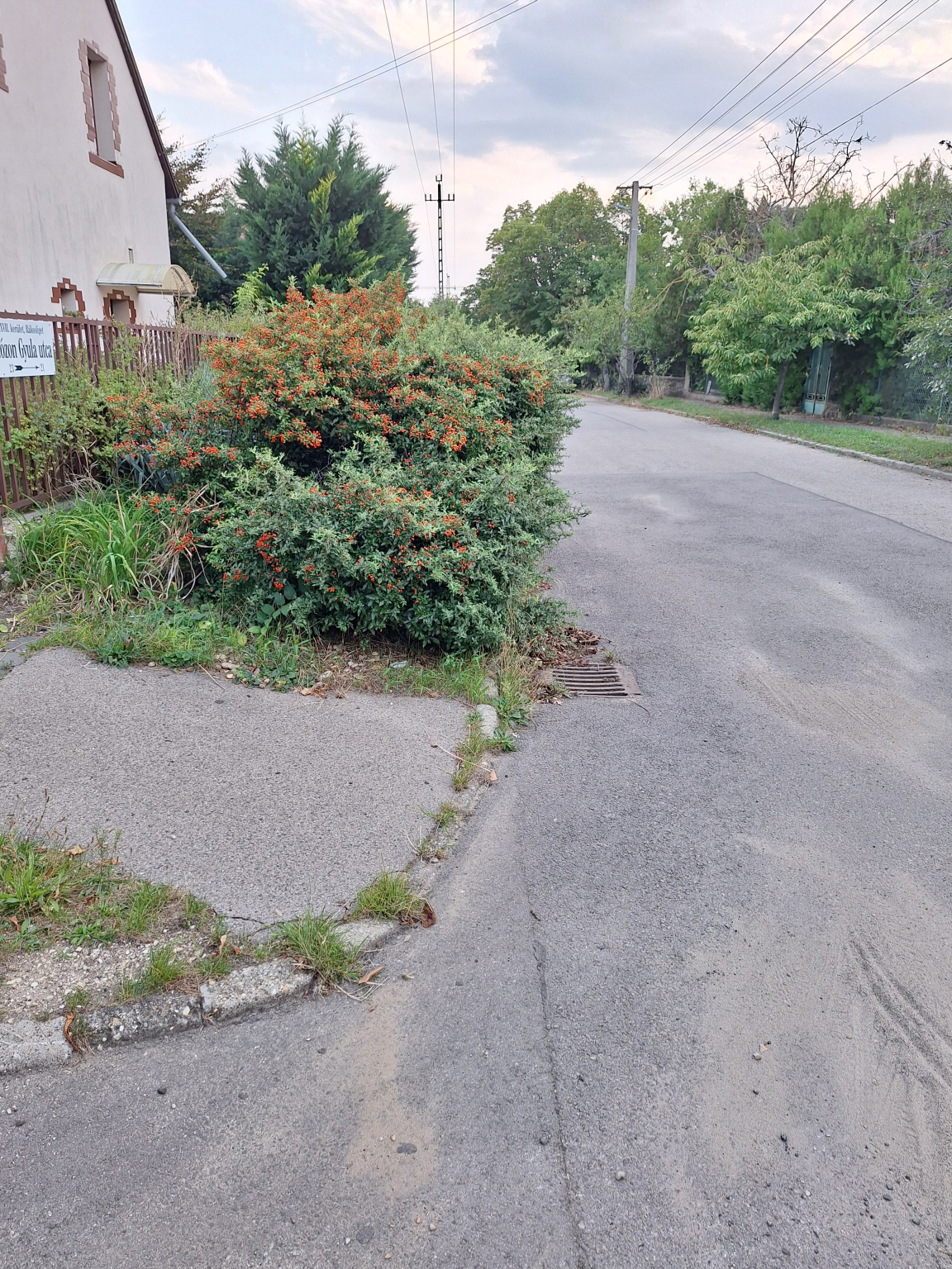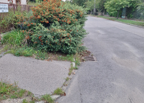 Ezúton szeretném jelezni, hogy a mellékelt képen látható bokor túlnőtt az út szélén, és jelentősen akadályozza a kilátást az úttestre, különösen a gyalogosok és a kanyarodó járművek számára.