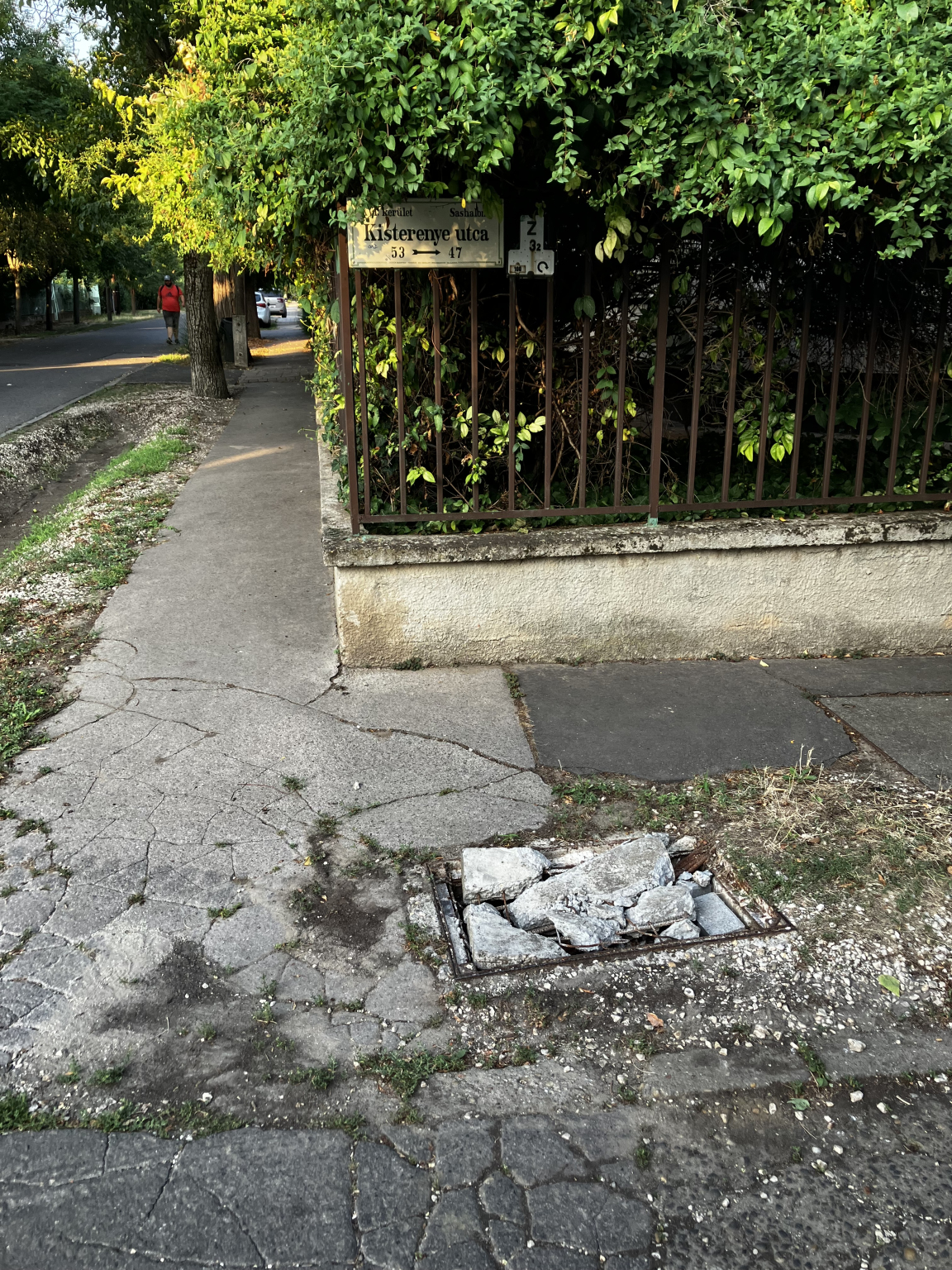 Budapest XVI. kerület Kisterenye utca 53. sz. alatti sarkon sérült, balesetveszélyes fedlap található. Kérjük mielőbbi javítását.