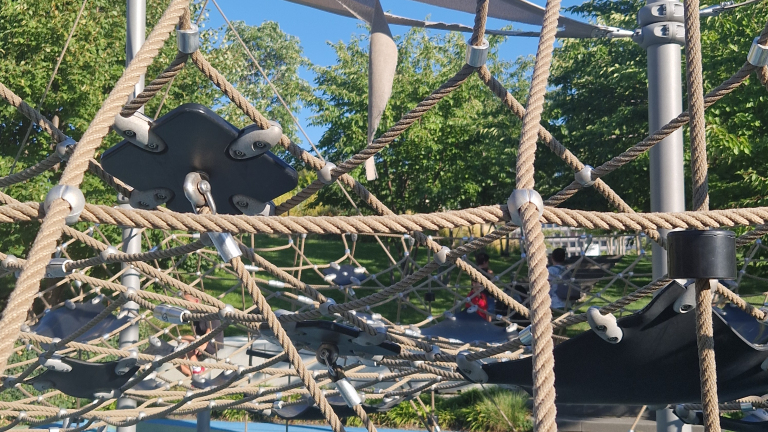 A Millenáris Park mászókája fölötti árnyékoló vászon szakadt