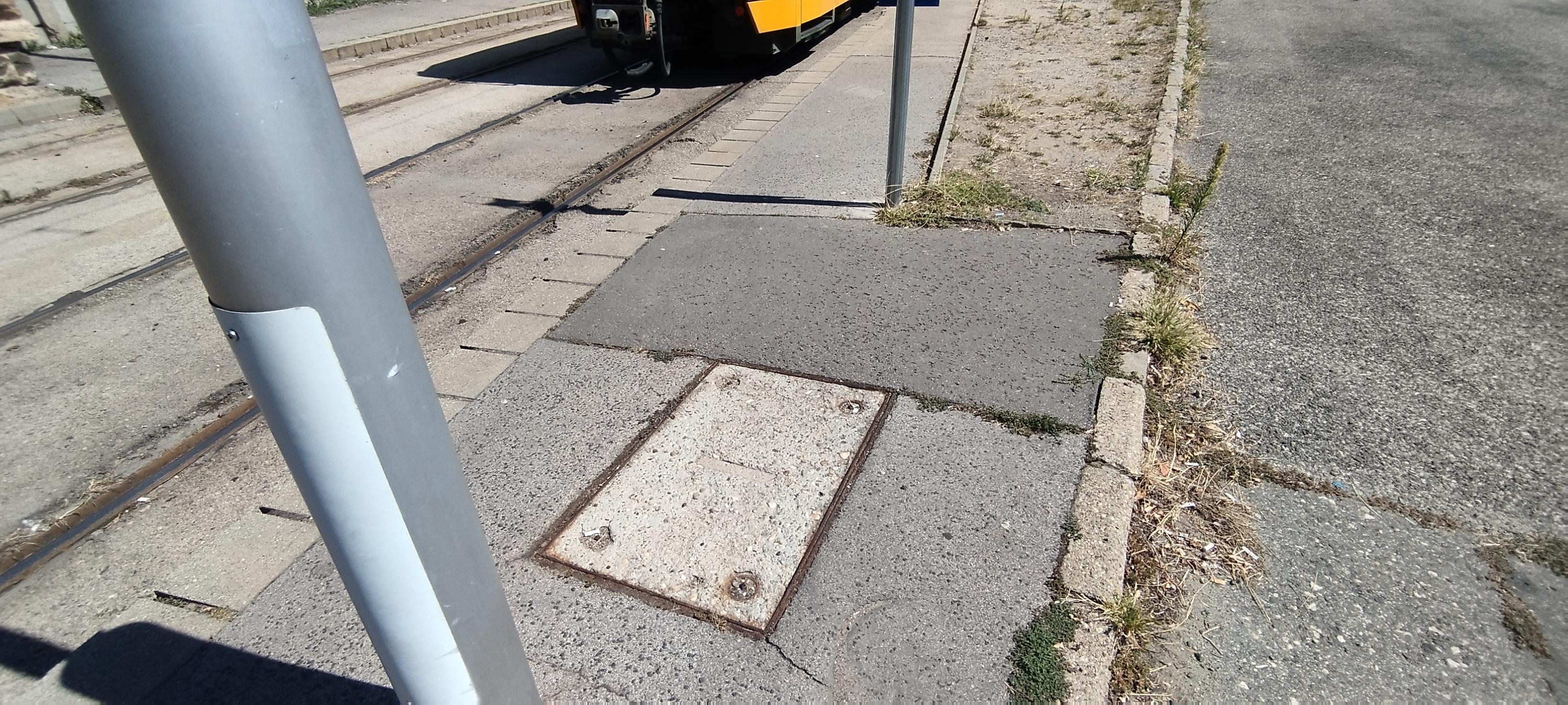 A X. kerület, Élessarok vill. megálló peronon található fedlapot a helyszínen megvizsgáltuk. (képek)