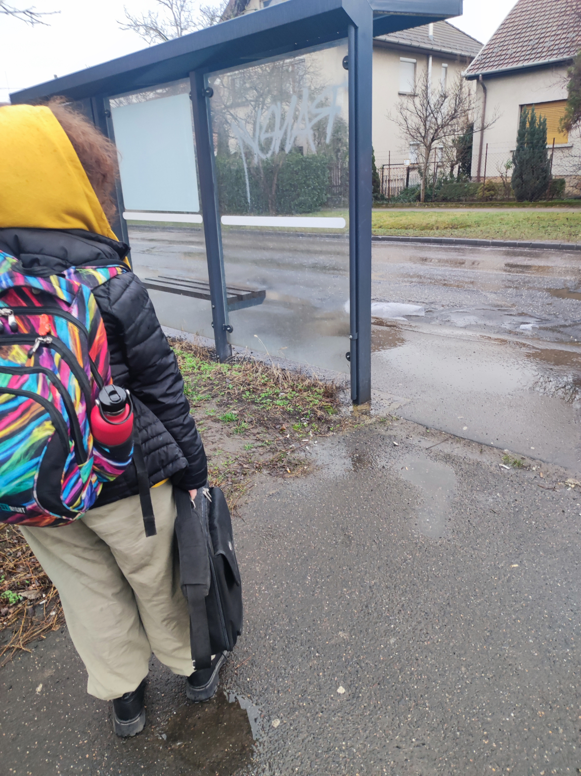 Buszmegálló használata esőben
