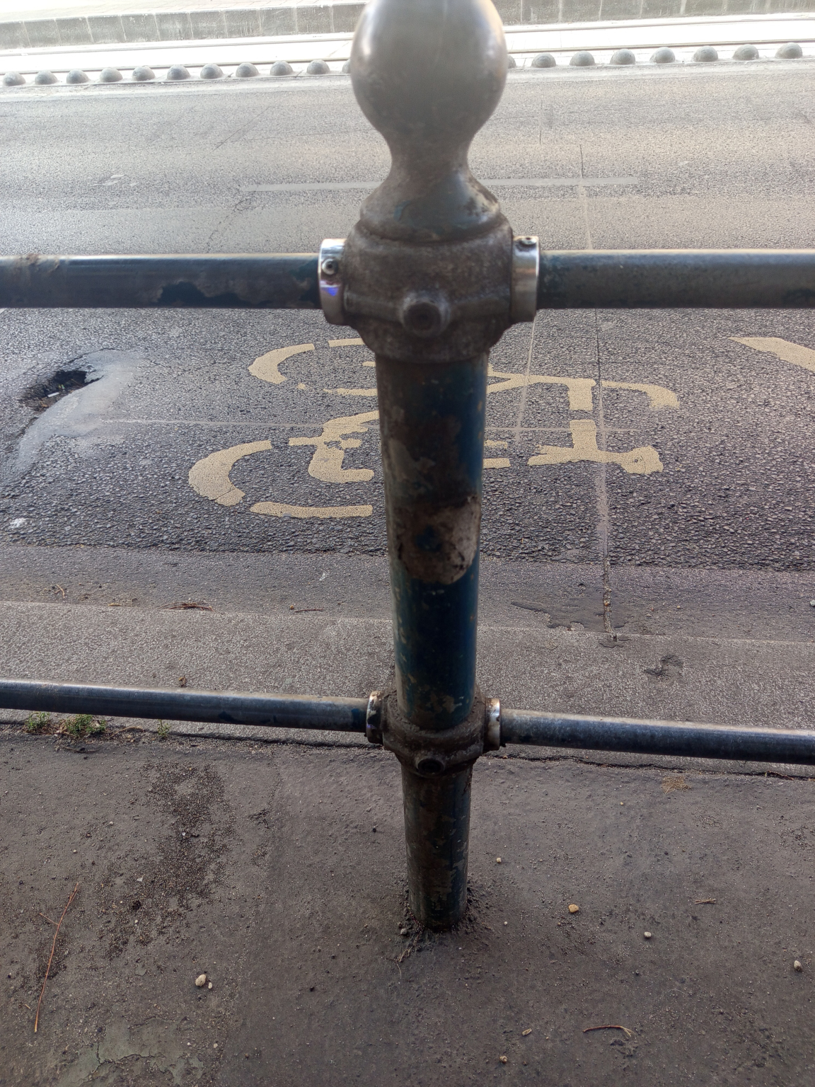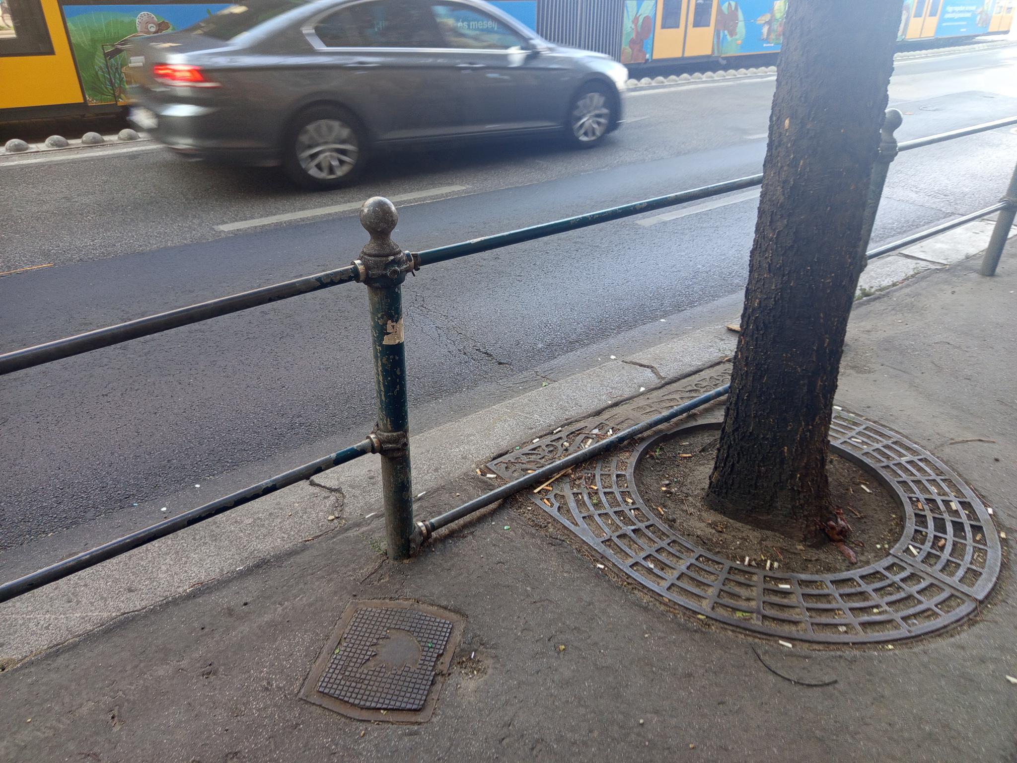 Nagyon rongálódott és megkopott útelválasztó korlát! Megkérném az illetékest hogy gondoskodjon a korlát javításáról és újrafestèsèről mert nagyon elronditó hatással van a területre! Előre is köszönöm!