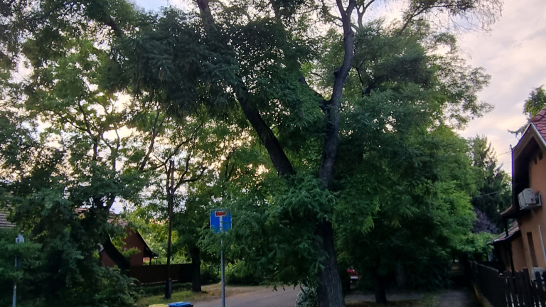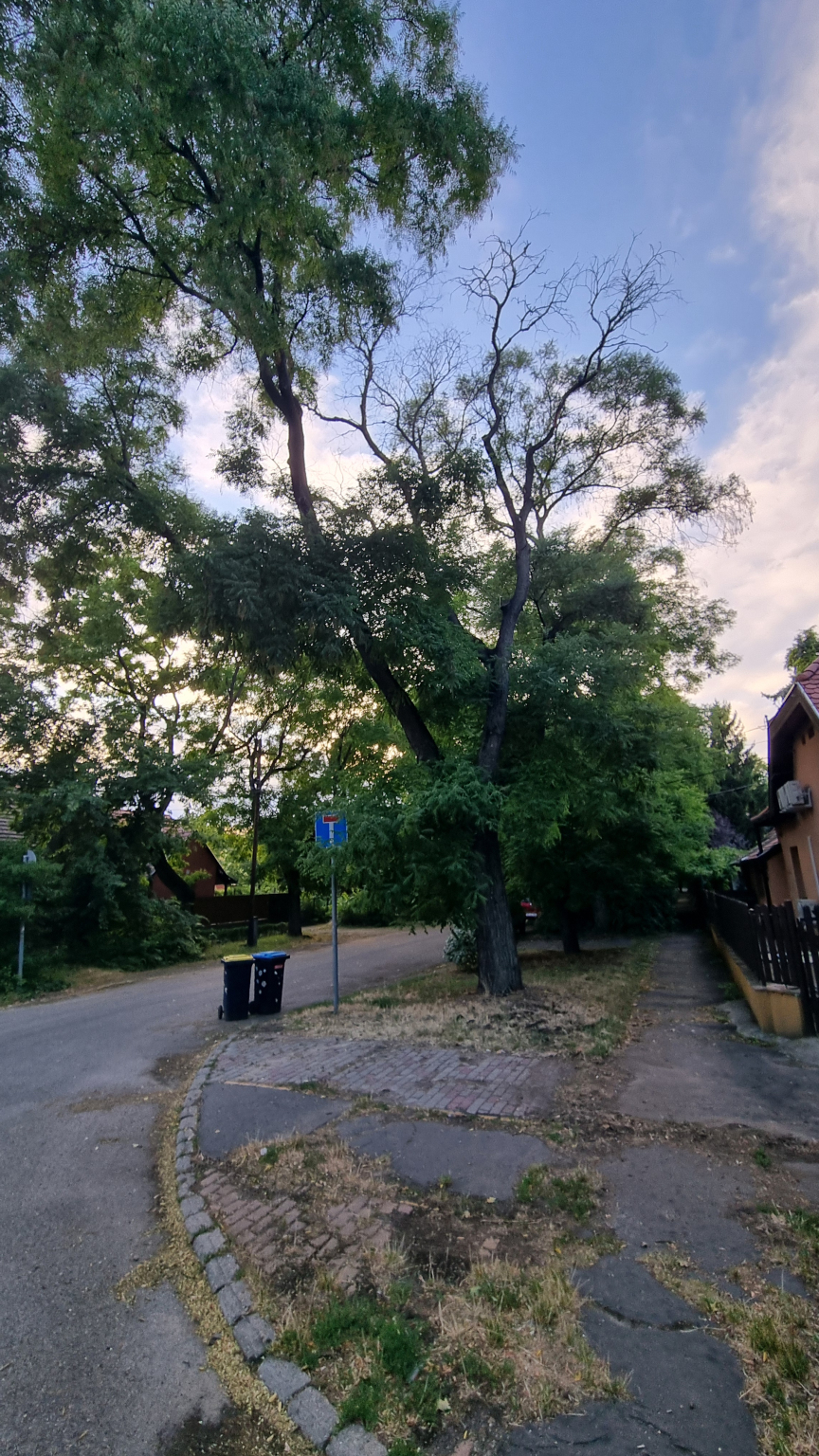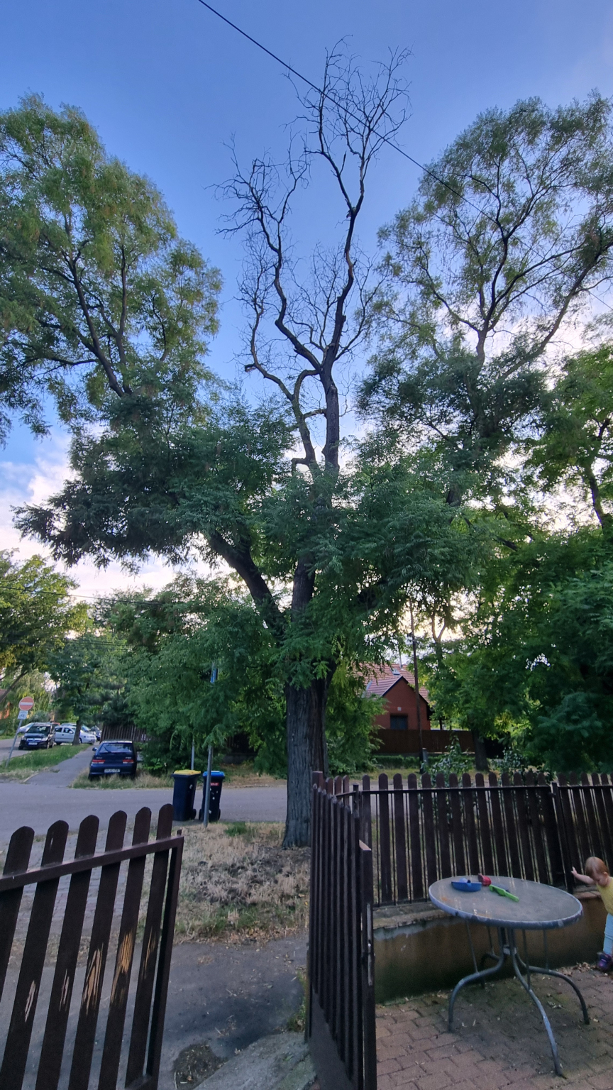 Probléma: kihalt/korhadó faág egy öreg fán - potenciális veszélyforrás viharok idején (gyalogosokra, parkoló autókra valamint házra közvetlen veszélyforrás), mivel vastag ágakról van szó. A csatolt fényképen jól látható, hogy a fa középső részében már nincs élet, az itt lévő két fő faág korhadásnak indult.