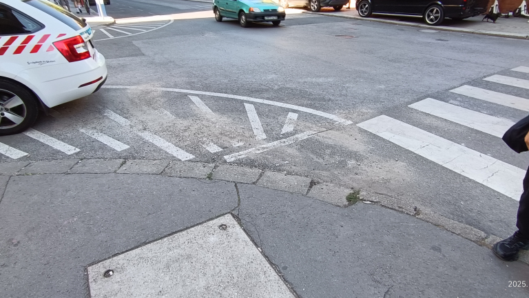 "A beküldött fényképfelvételen eső által a Gellért hegy felől lehordott kavicsos hordalék takarja az útburkolati jeleket, melyek egyébként jól láthatóak.