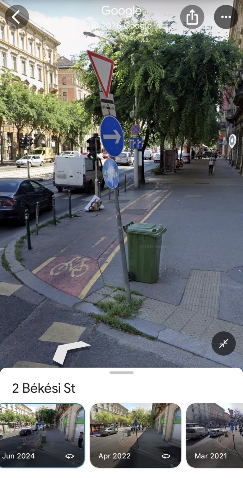 „Amúgy a Google Maps korábbi fotói alapján 2021. március és 2024. június között még az átvezetés előtt volt a tábla, kiegészítő táblával és osztott kerékpár- és gyalogút táblával.”