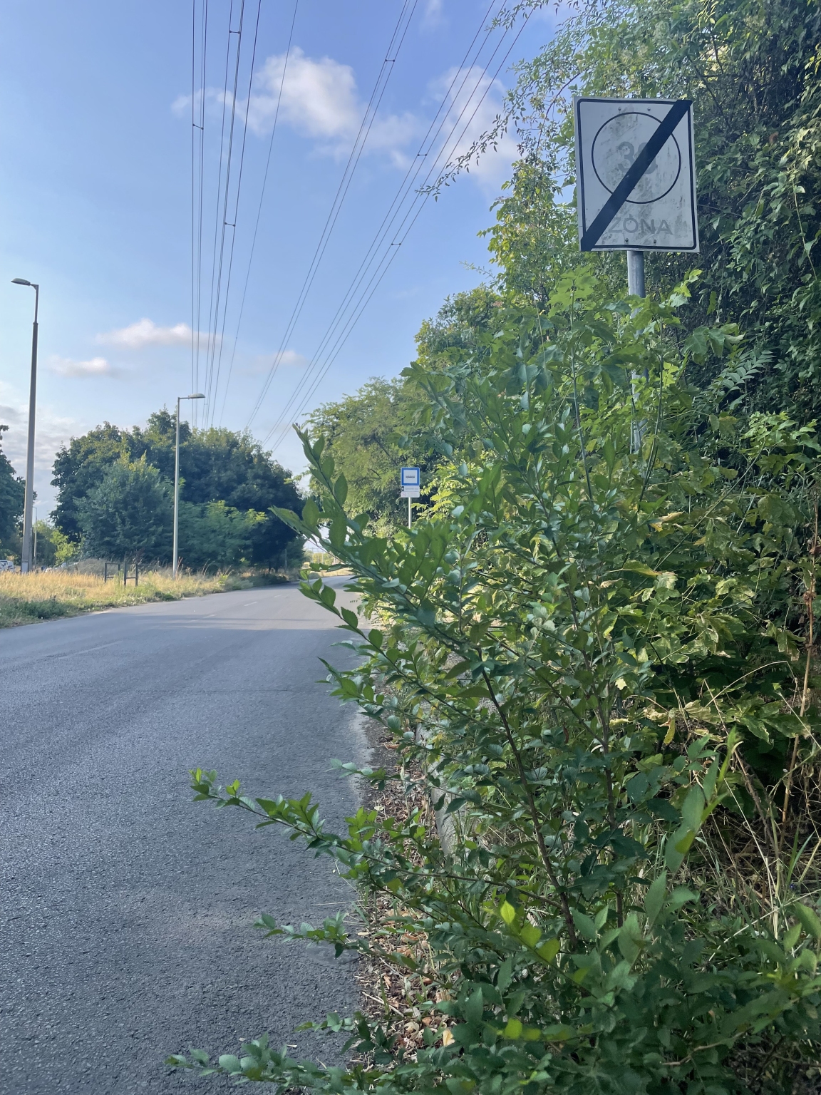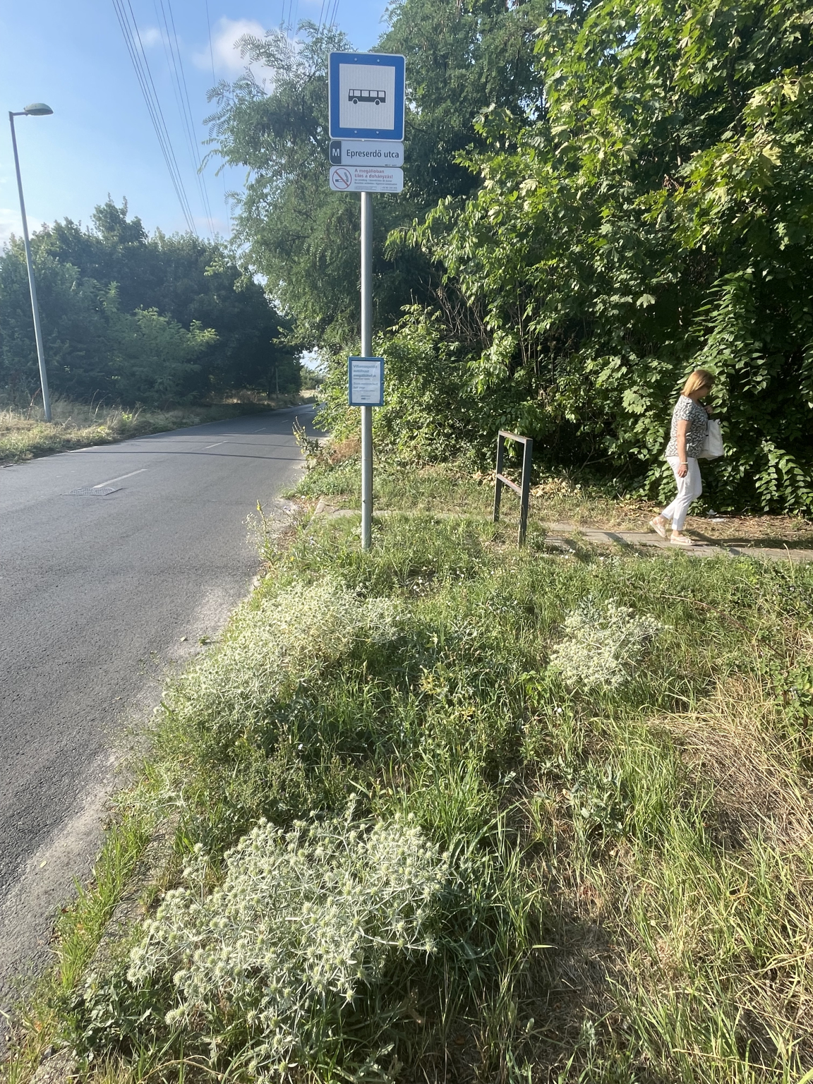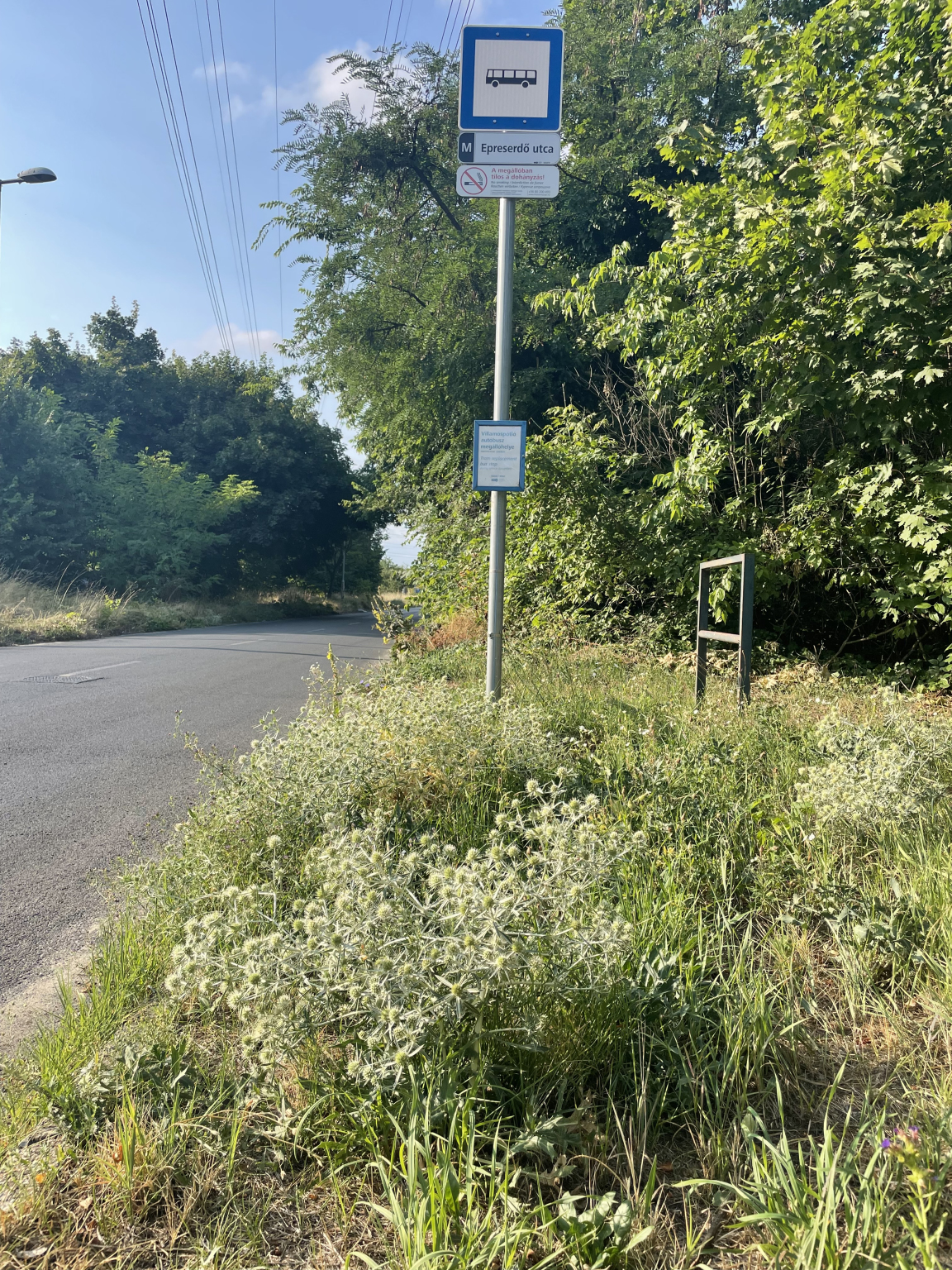 Epreserdő utcai buszmegállóban nagy szúrós bozót nő.