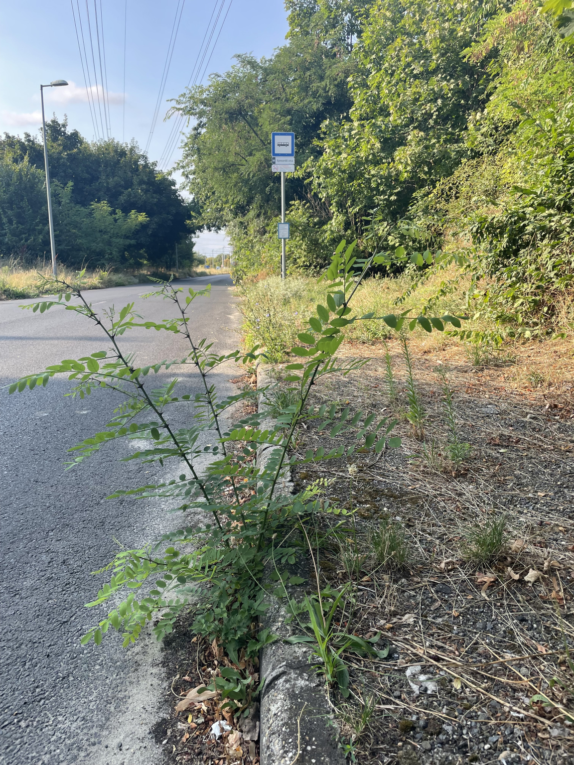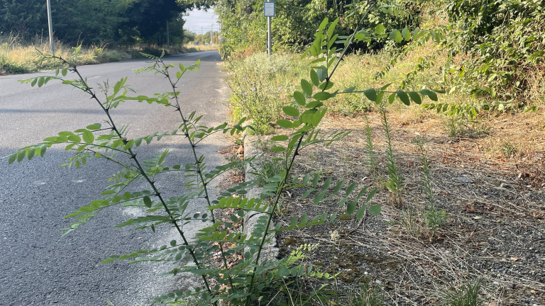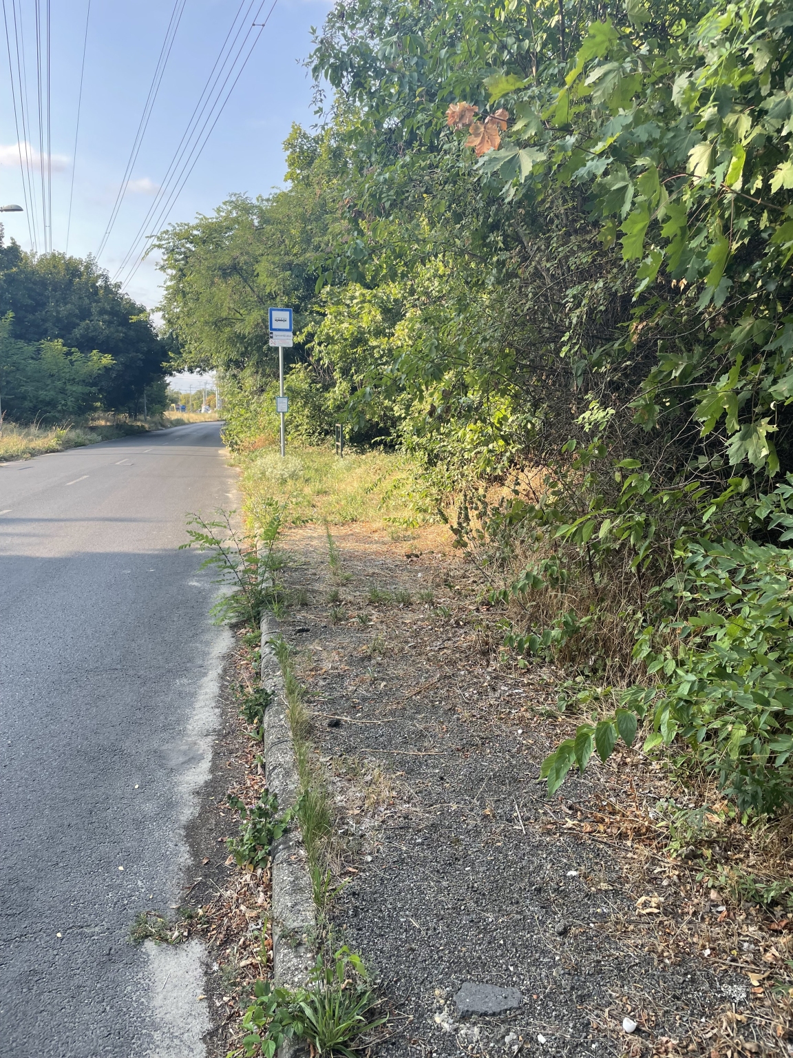 Epreserdő utcai buszmegállóban nagy szúrós bozót nő.