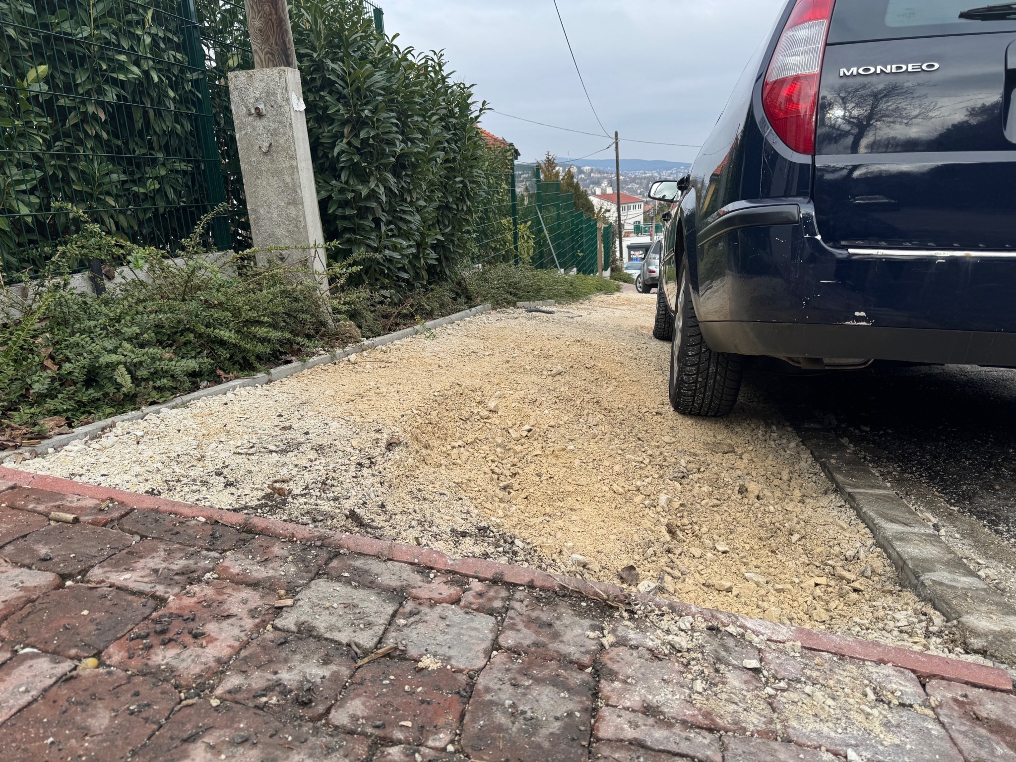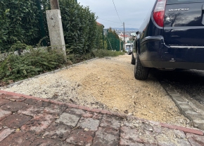 A burkolat kaviccsal való feltöltése bár döngölve történt, az esőzés hatására az anyag fellazul, az autók kerekei kihordják a kavicsot, így a terület ismét balesetveszélyessé válik.