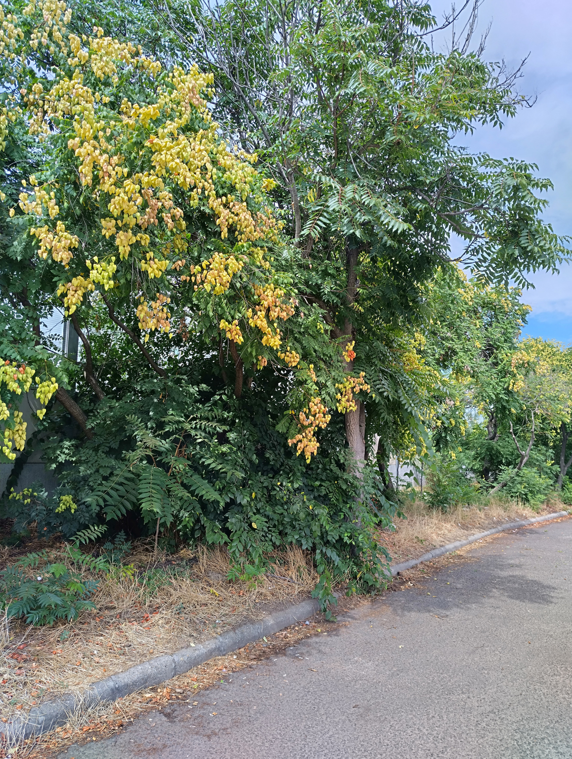 Ezeket a meglévő lombozat tartja csak bármikor leszakadhat leeshet valakire, valamire, járművekre.