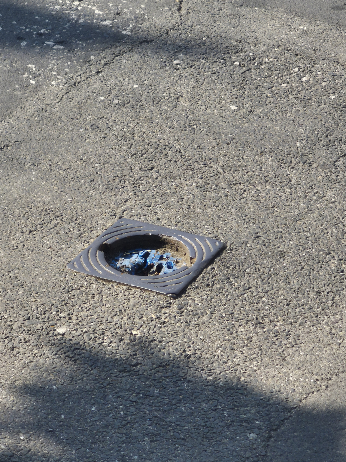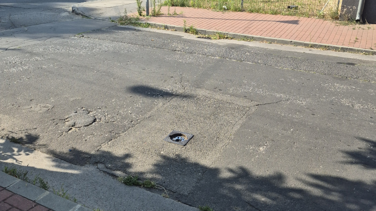 Hiányzó vízelvezető elem az úttesten