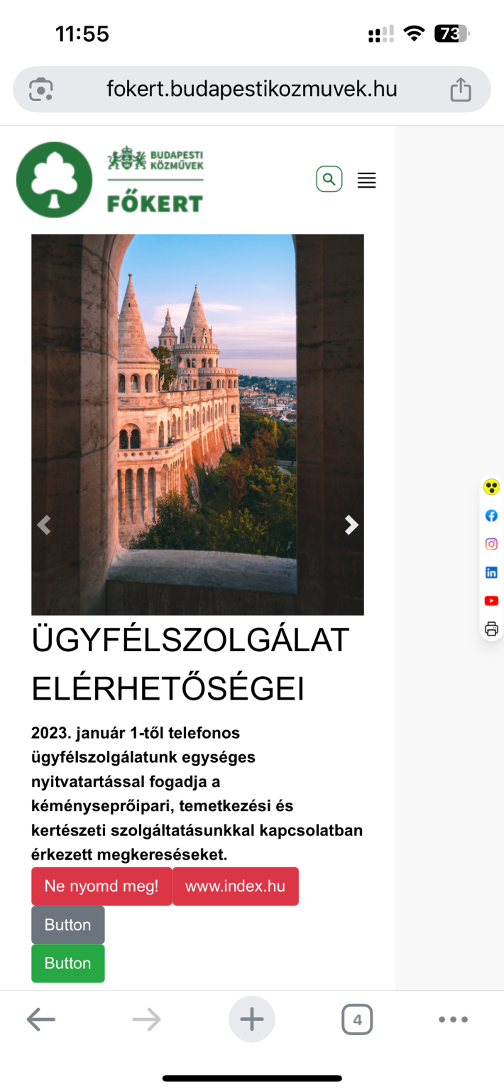 A Gellérthegy oldalában lévő csúszdaparkban és játszótéren az alábbi képeken látható balesetveszélyes problémákat észleltem: kiszakadt mászóka rögzítő, hiányos rugó az ugrálón, elkorhadt fa, kitöredezett macskakövek közti rész, olvashatatlanra rongált információs tábla, elmállott rekortán borítás. Minden fa rész a csúszdaparkban újra felületkezelésre is szorulna. Amikor közvetlenül jelentettem volna ezeket be, a Főkert googleből megnyitott ügyfélszolgálati oldalán pedig egy vélhetően nem élesre szánt weboldal nyílik meg, “ne nyomj meg” gombbal és index.hu linkkel.