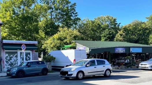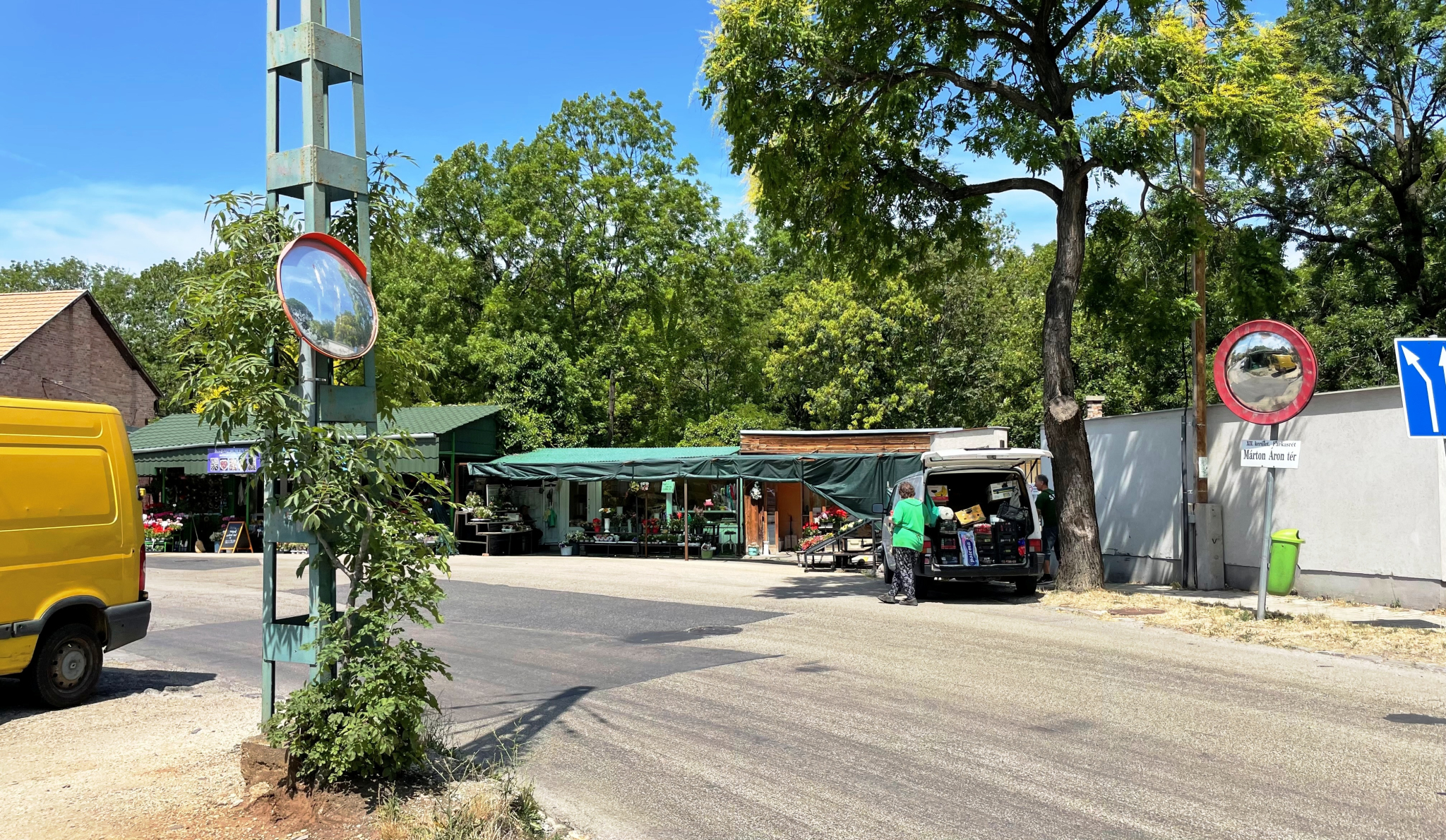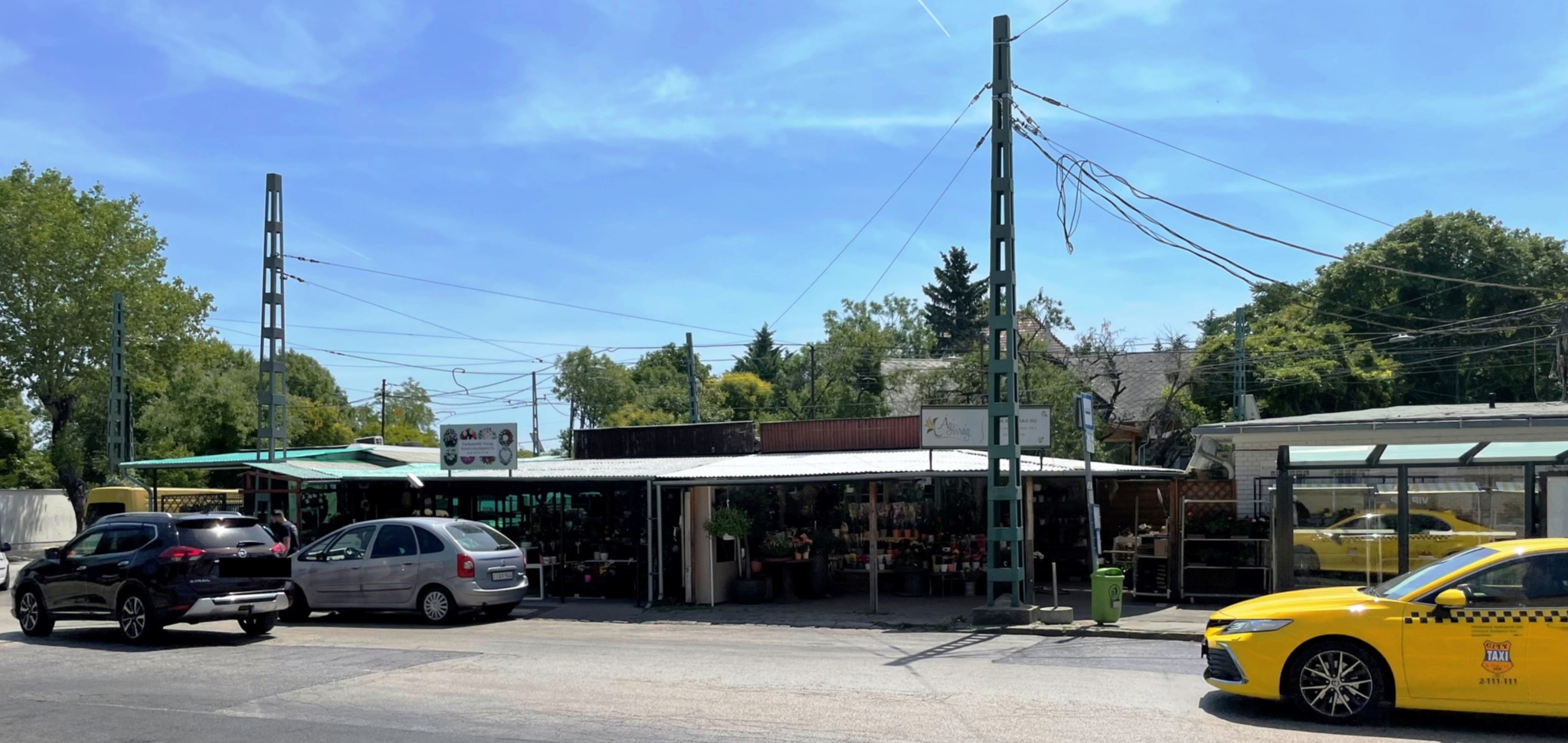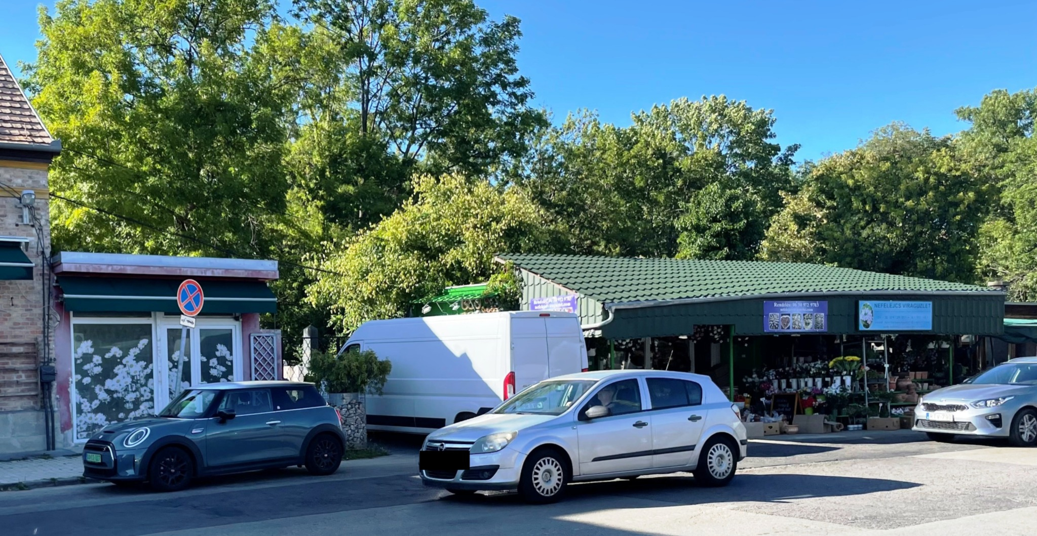 virágárus pavilon is van , amik nem csak a járdát foglalják el , de egészen az úttest széléig
