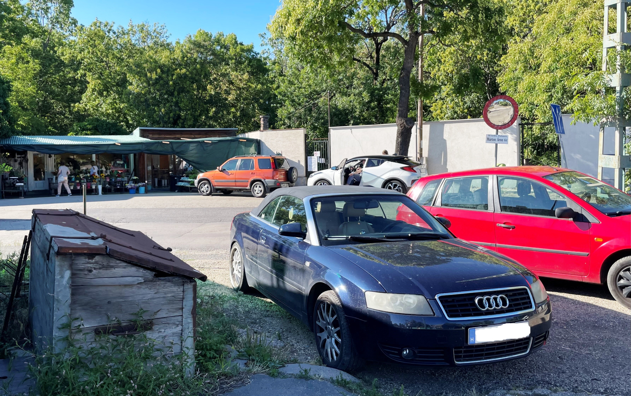 virágot vásárlók kanyarban parkoló autóit, ami önmagában is baleset veszélyes! Azok a