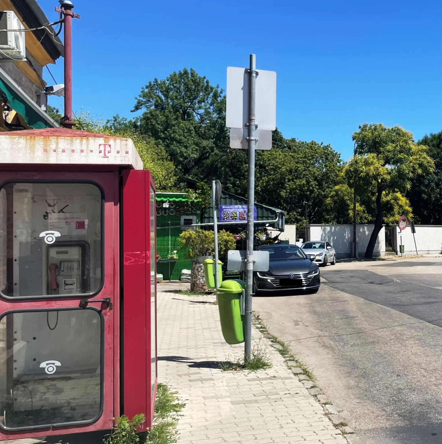 van a portékájuk kirakva/kitolva. Az érkező 8-s busz így kerülgetni kényszerül az éppen