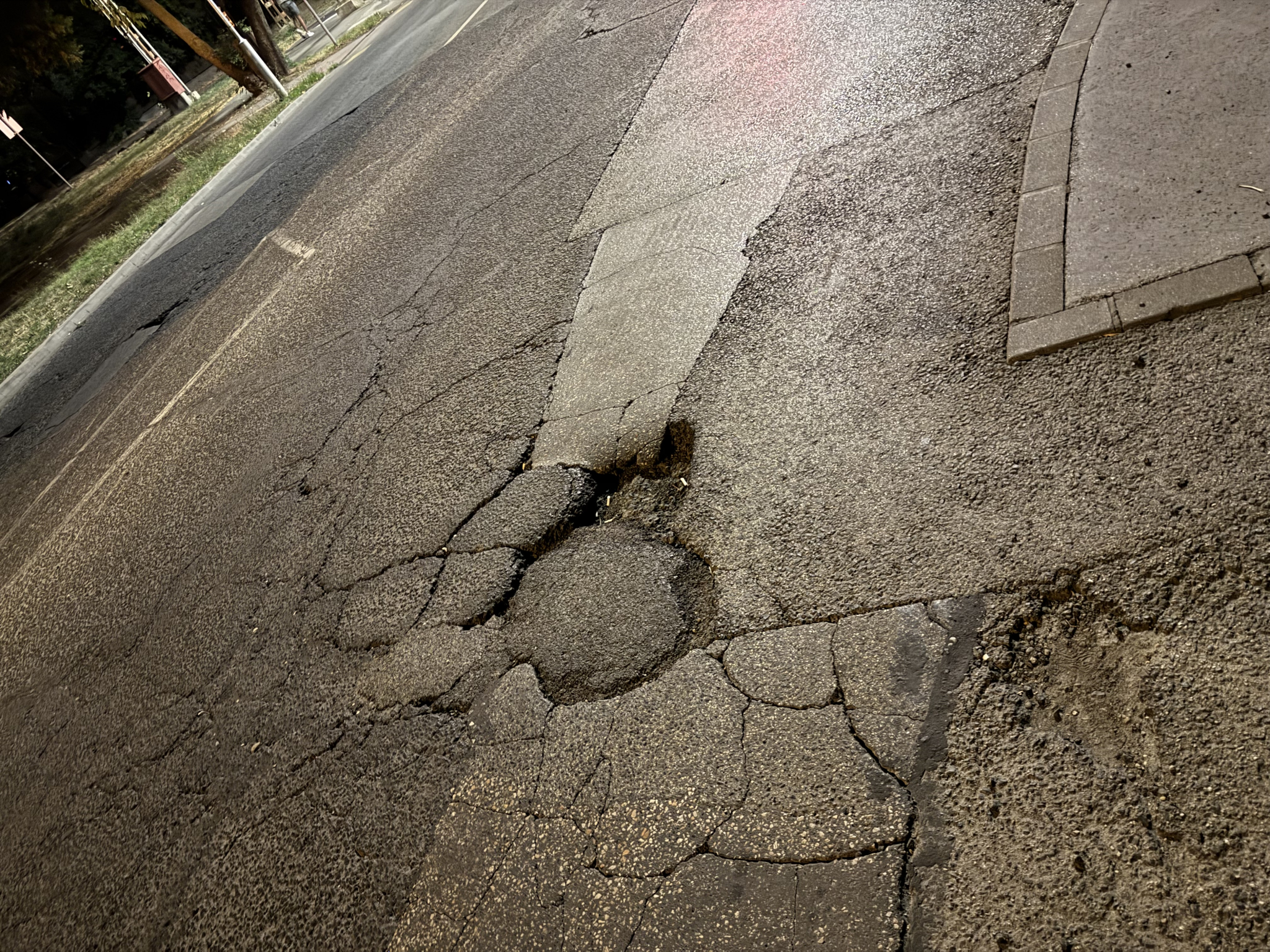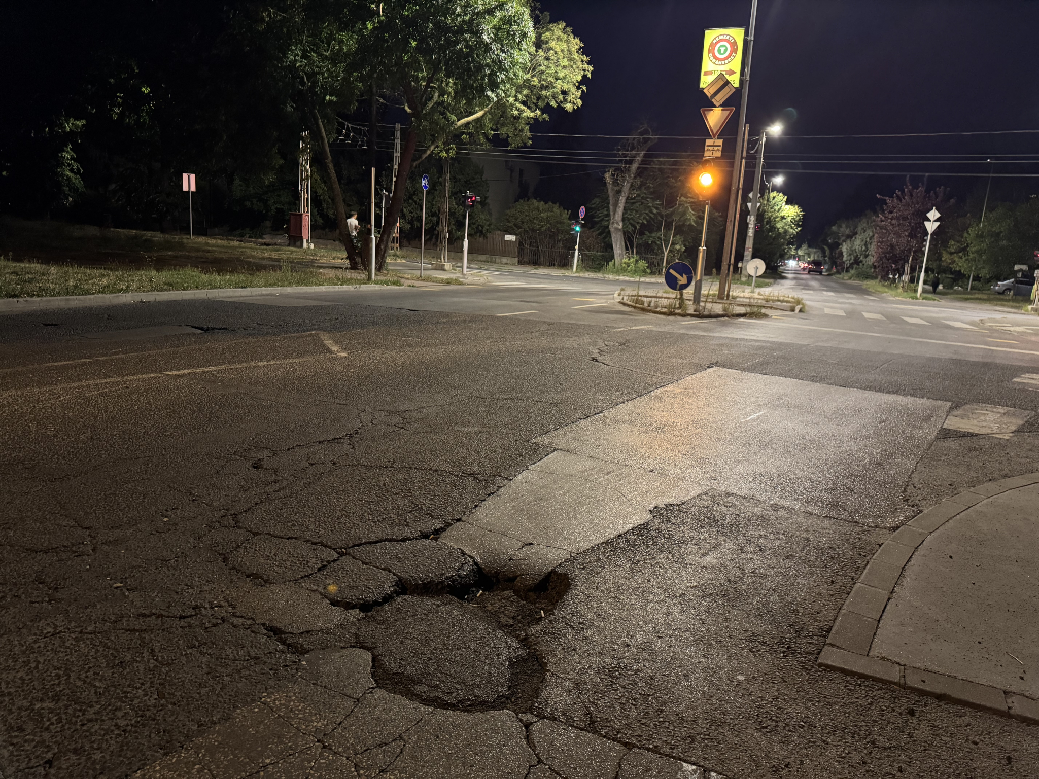 Veszélyes kátyú alakult ki a térképen jelzett helyen.