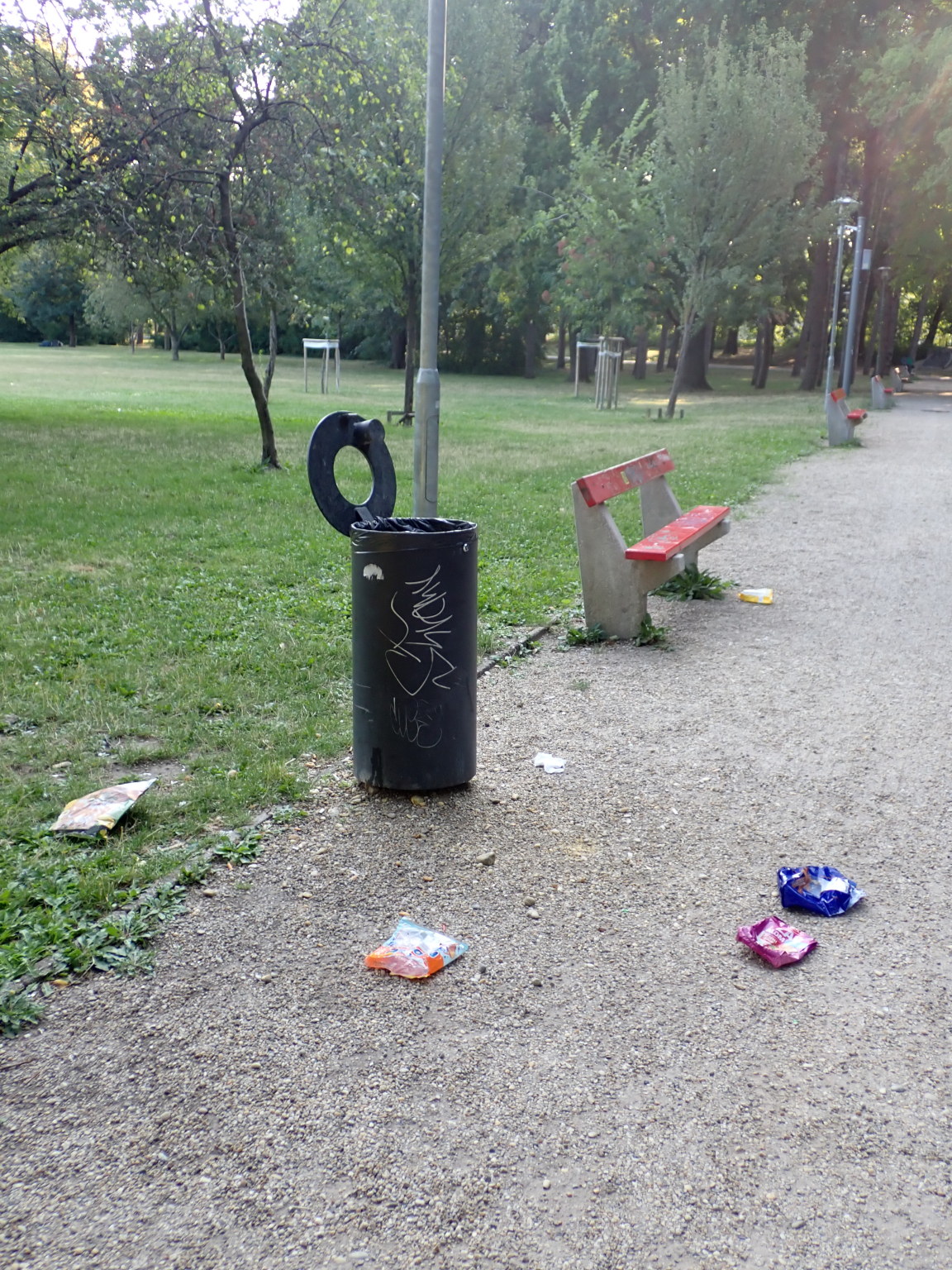 Zárható, de nyitott szemetesedények a Margitszigeten