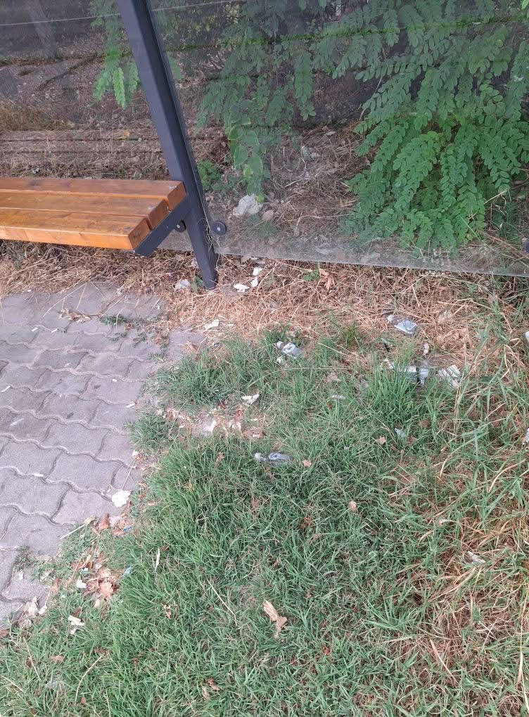 Budapest, 23. Kerület Tartsay utca -Szent László utca kereszteződésében lévő mindkét buszmegálló szemetes.