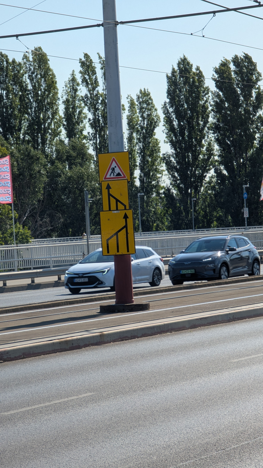 Az Árpád hídon egymásnak elletmondó jelzések vannak kint, ráadásul a sávszűkítés csak éjszaka, a felújítási munkálatok idején érvényes, nappal le kellene takarni, mert az autóvezetők a tábláknak megfelelően sorolnak be a sávokba, feleslegesen lassítva a híd forgalmát.