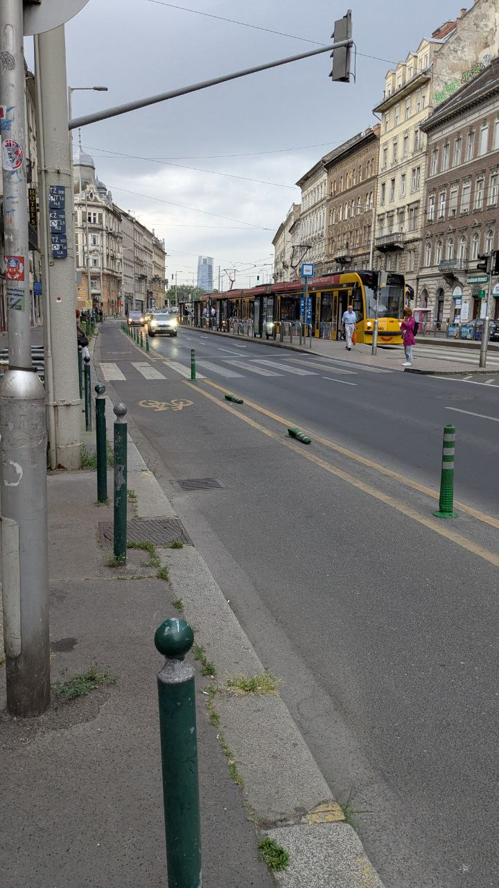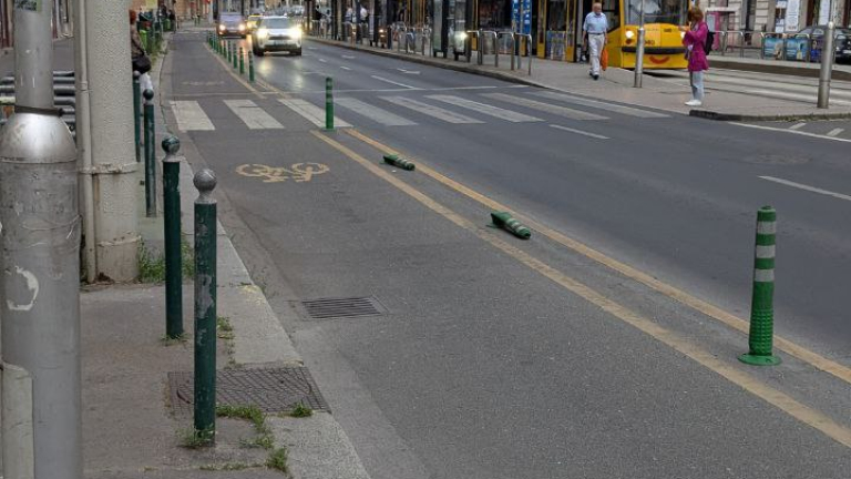 Kidöntött poller. Kérem, javítsák meg vagy távolítsák el őket. Köszönöm.