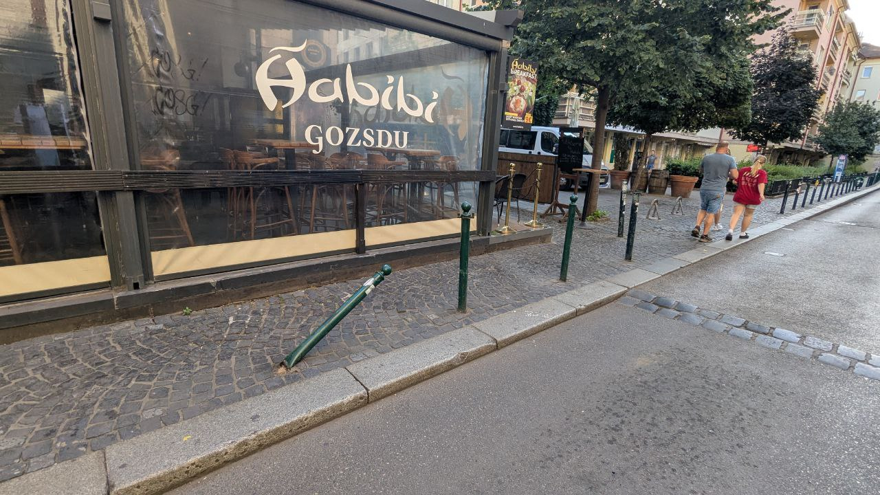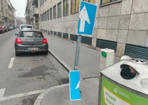 Kidöntött poller. Kérem, javítsák meg vagy távolítsák el őket. Köszönöm.