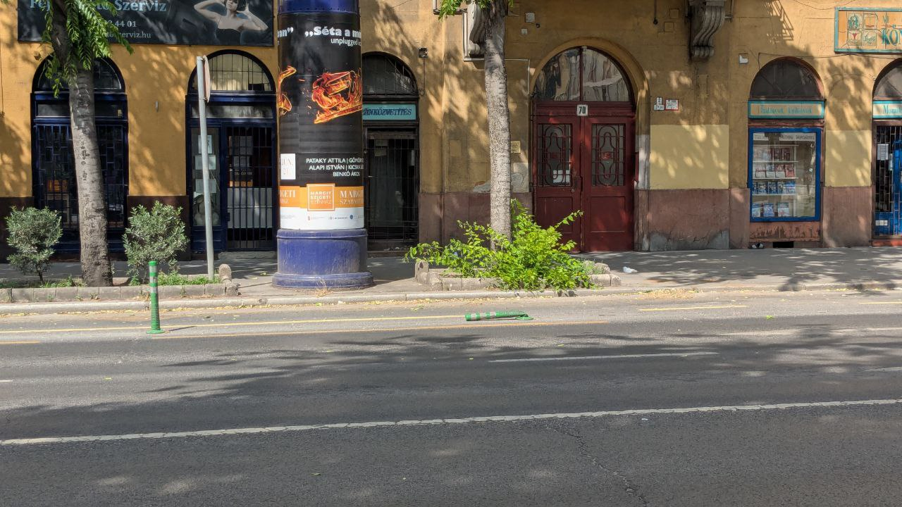 Kidöntött poller. Kérem, javítsák meg vagy távolítsák el őket. Köszönöm.