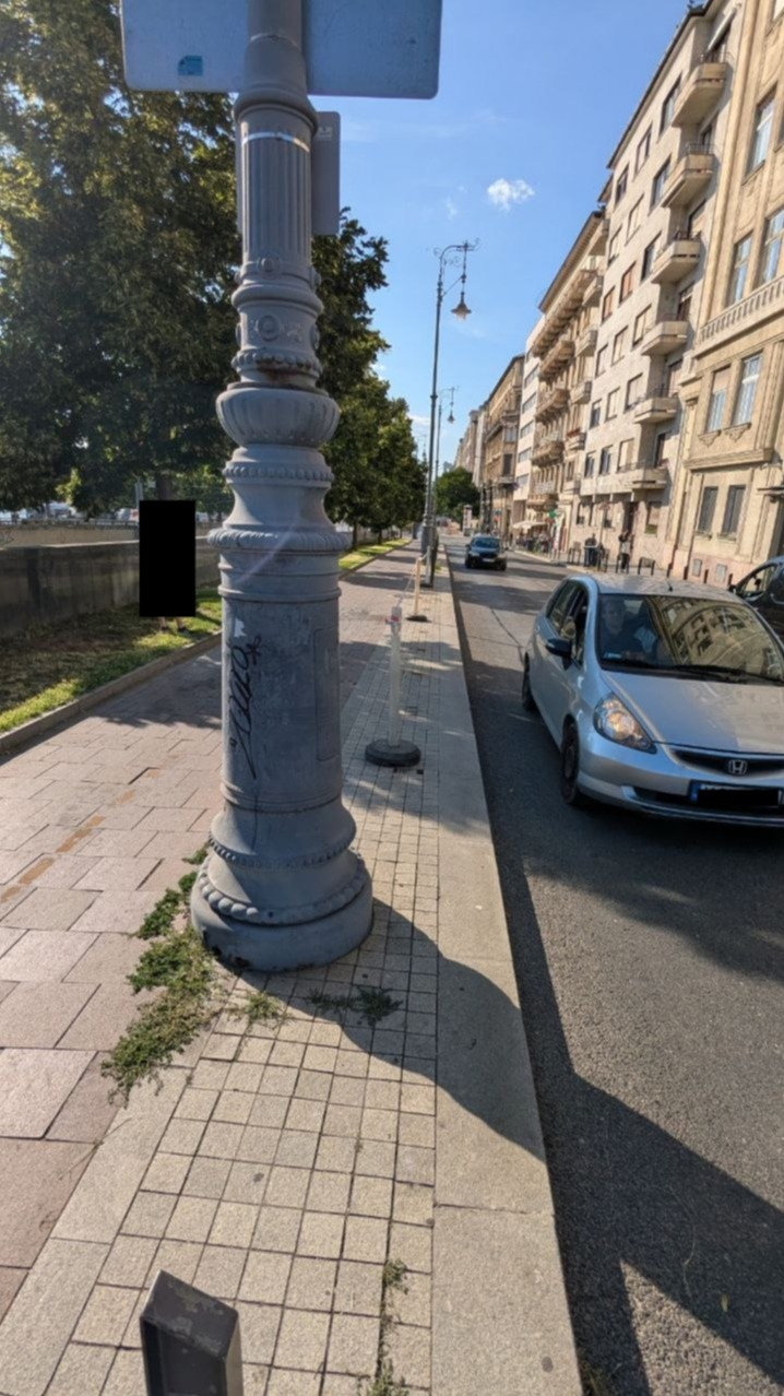 Kidöntött poller. Kérem, javítsák meg vagy távolítsák el őket. Köszönöm.