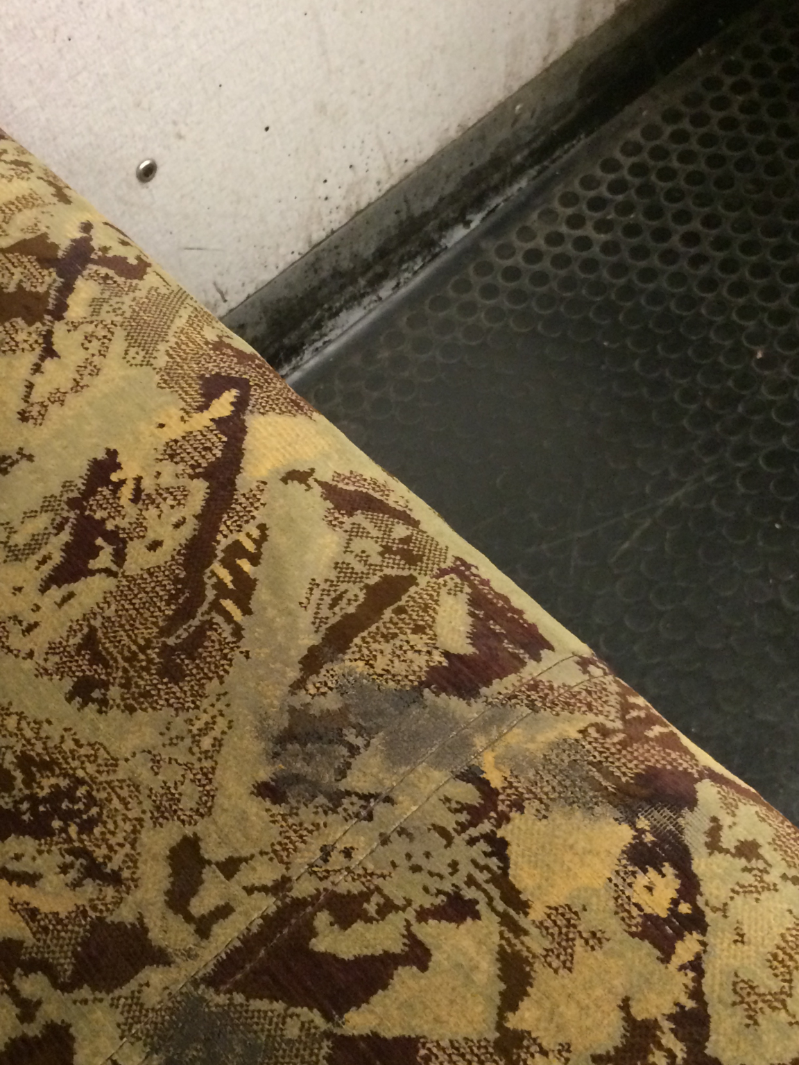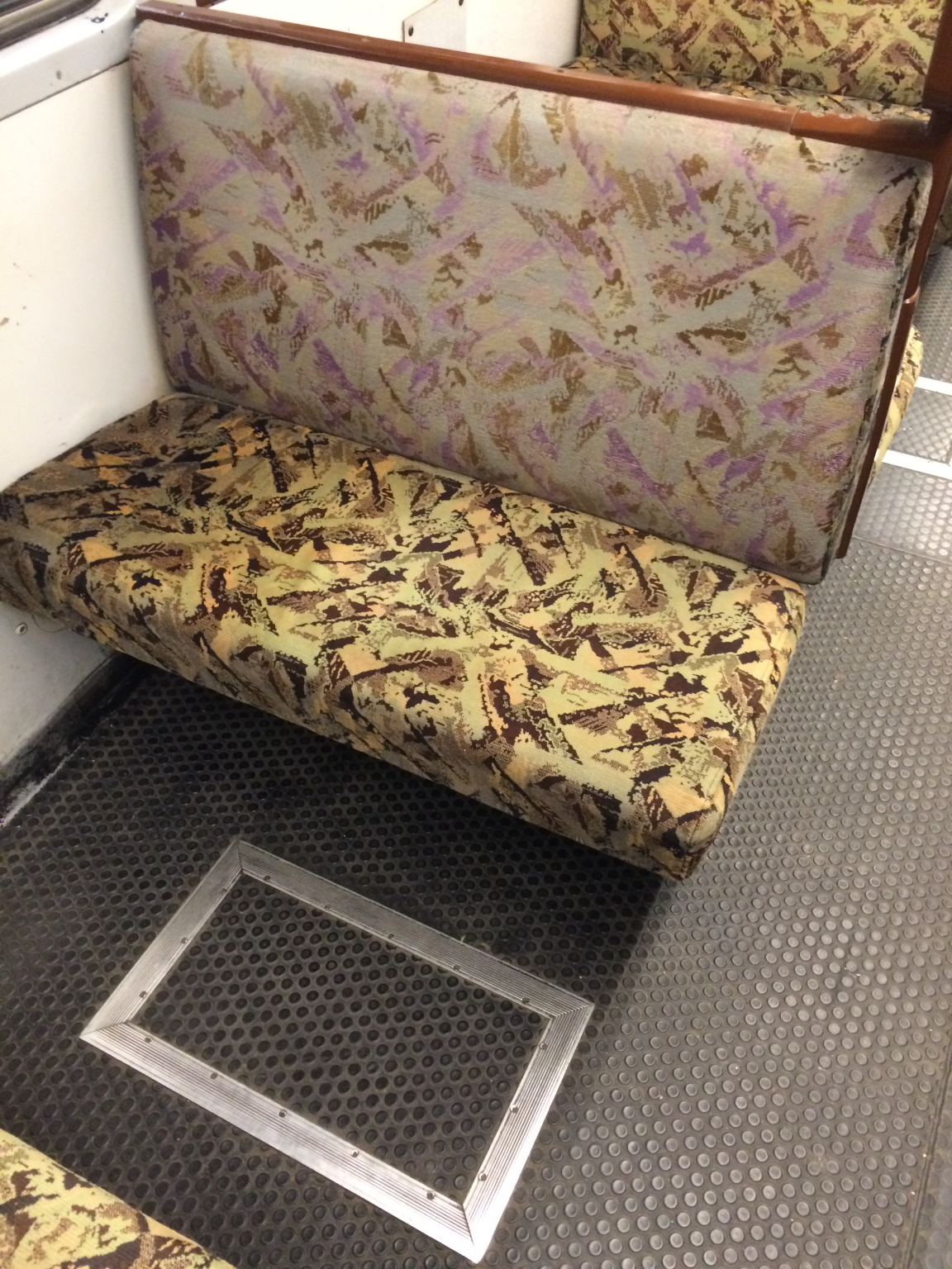 A H5-ös HÉV 972-es számú szerelvénye undorítóan mocskos. Látszik, hogy ezer éve nem takarították rendesen, az ülések, kapaszkodók, ajtók teljesen kopottak, borzasztó látvány.