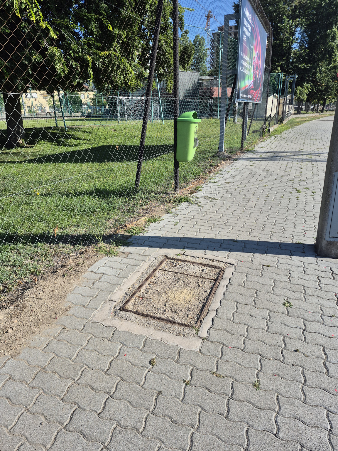 A XIII. kerület, Újpalotai út 13. előtti járdán a sérült, kopott fedlap javítását Társaságunk megrendelte.