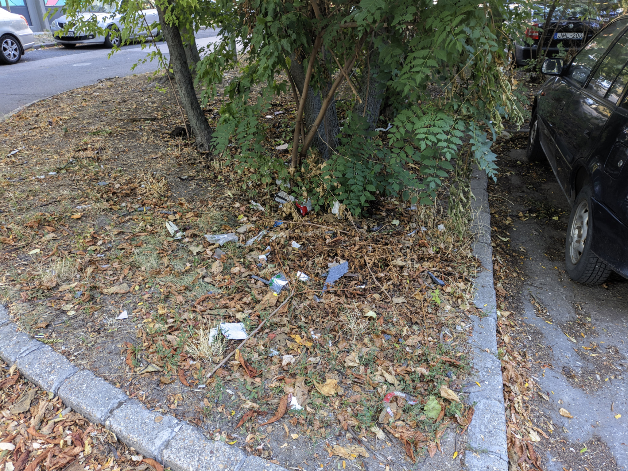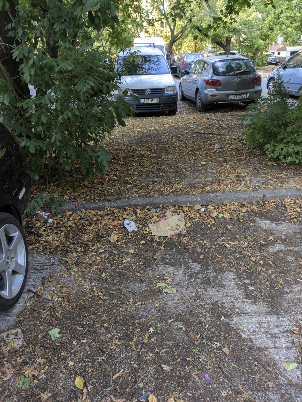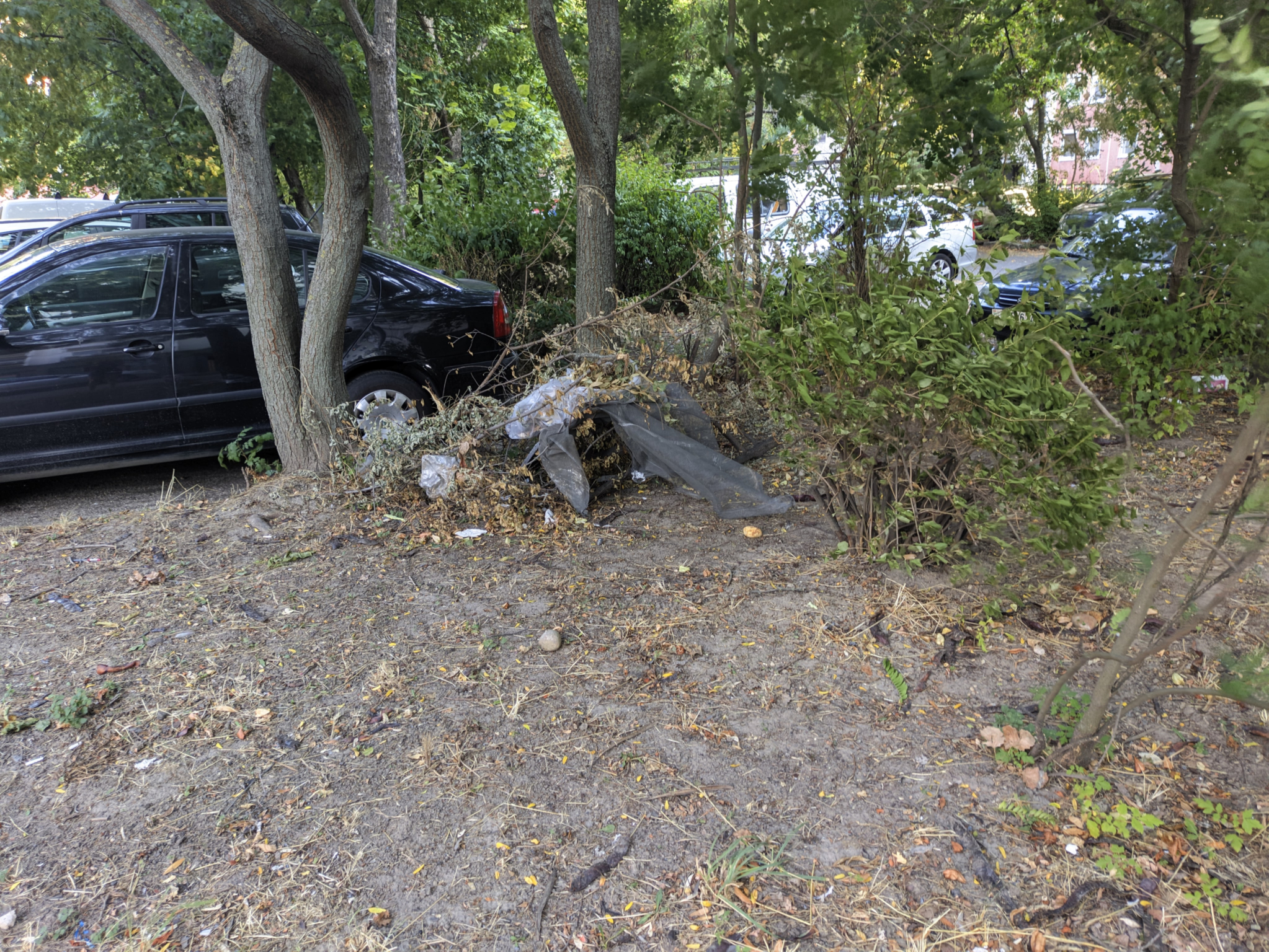 Sarkadi Imre , Bálint György és Füst Milán utca közös parkolójában rengeteg a szemét. Gumiabroncs, fagyálló és olajos flakonok is vannak.