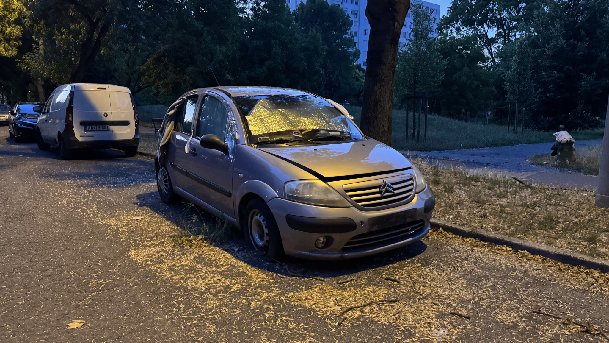Tele van szeméttel is dobálva, ablak lehúzva, rendszám sincsen. Kerek szíves intézkedésüket az ügyben! Köszönöm szépen!