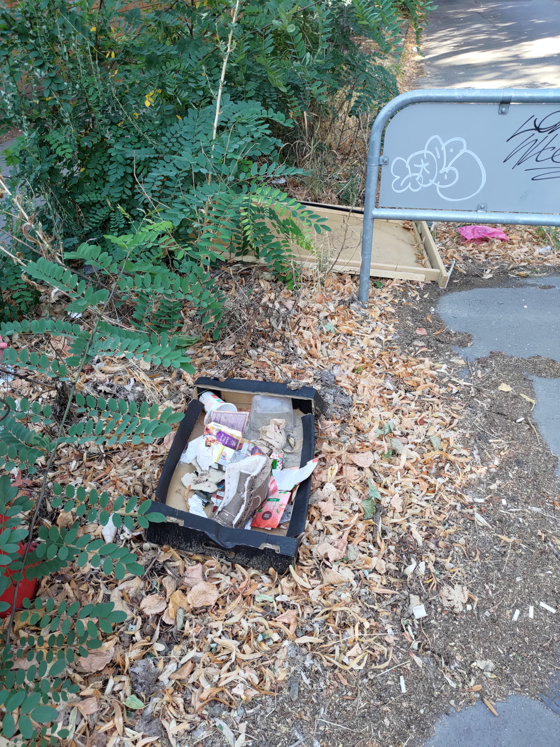Szemét a XIV. ker. Tábornok-Várna utca sarkánál.