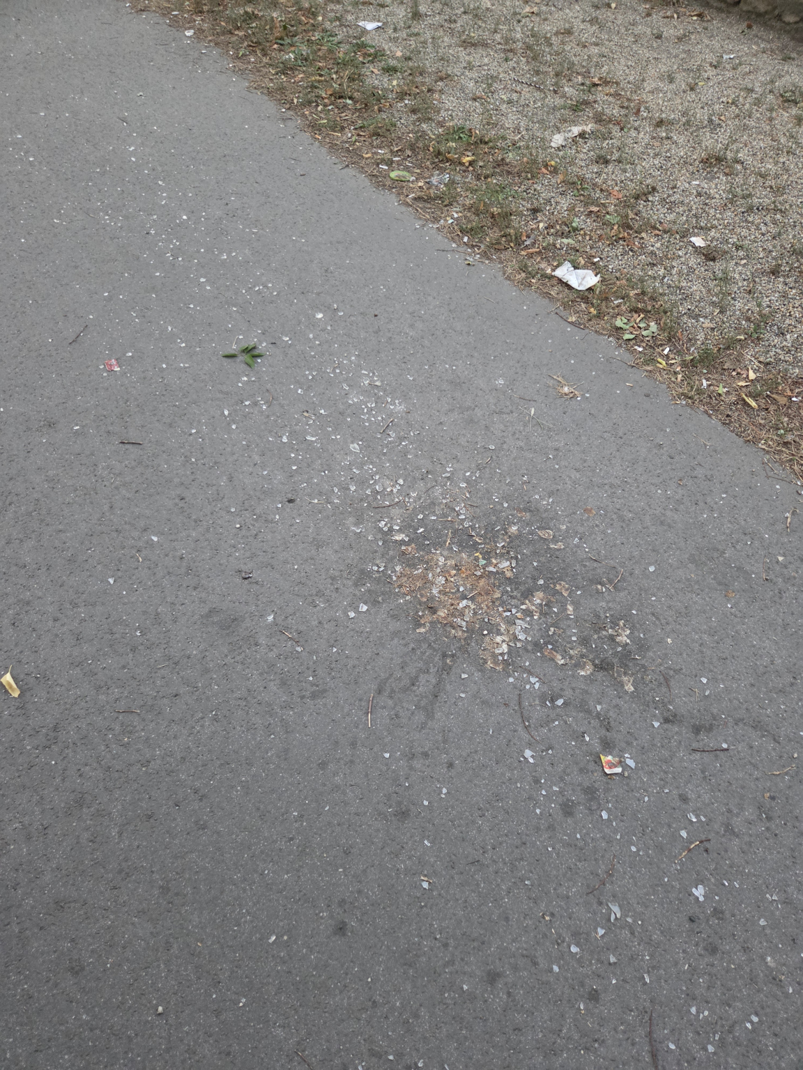 „Az üvegszilánkok továbbra is az eredet8 helyükön ékesítik az utcaszakaszt. Nincs megoldva a probléma.”