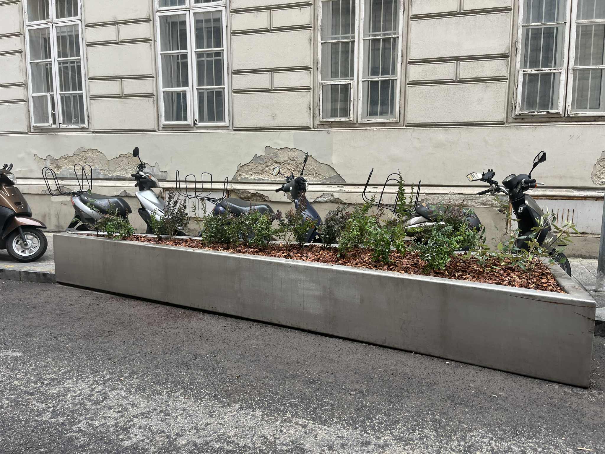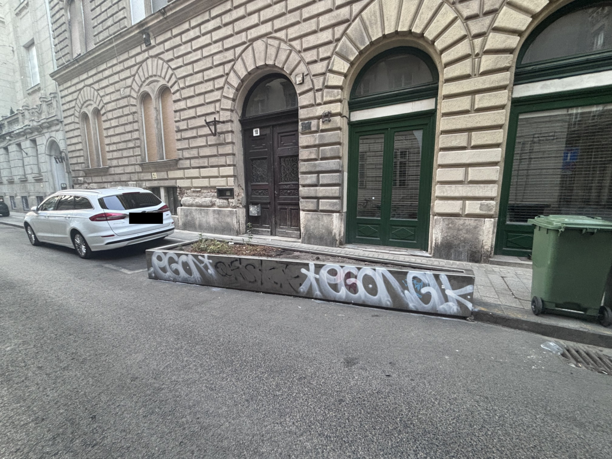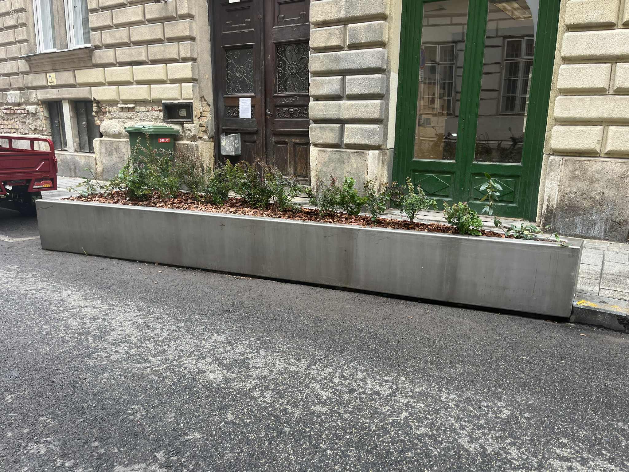 (Mindkét tároló egyébként folyamatosan tele van csikkel, üres üvegekkel és szeméttel, a beleültetett virágok általában egy napot sem élnek túl. Rendkívüli módon rontja az egyébként műemléki környezetet)