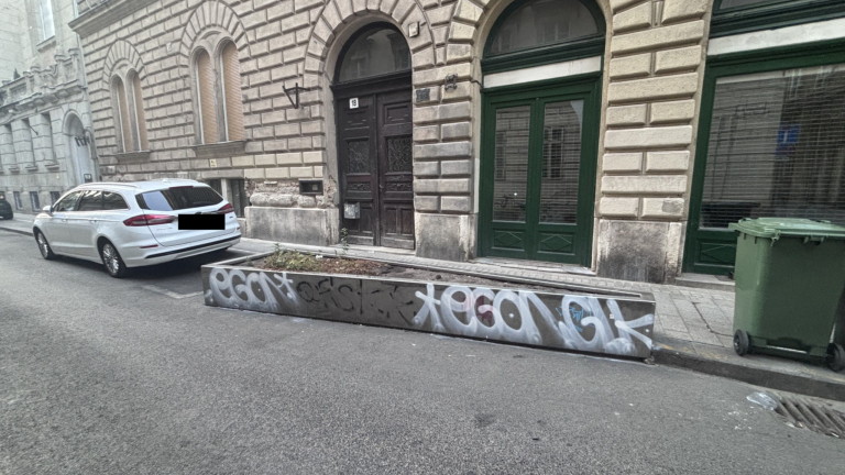 A Reáltanoda és Magyar utca sarkán található parkolásgátlókat ismeretlenek az elmúlt héten összegraffitizték. Köszönöm, ha foglalkoznak vele.