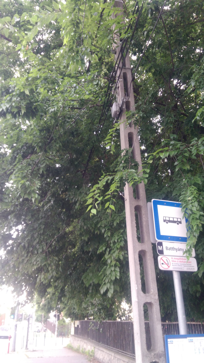 Kérem az illetékest, hogy a képen látható villanydrótok körül ritkítsa meg a lombkoronát, mert peches esetben zárlatot fog okozni!