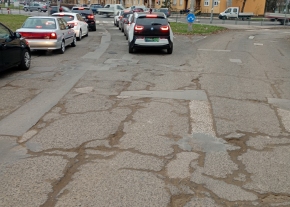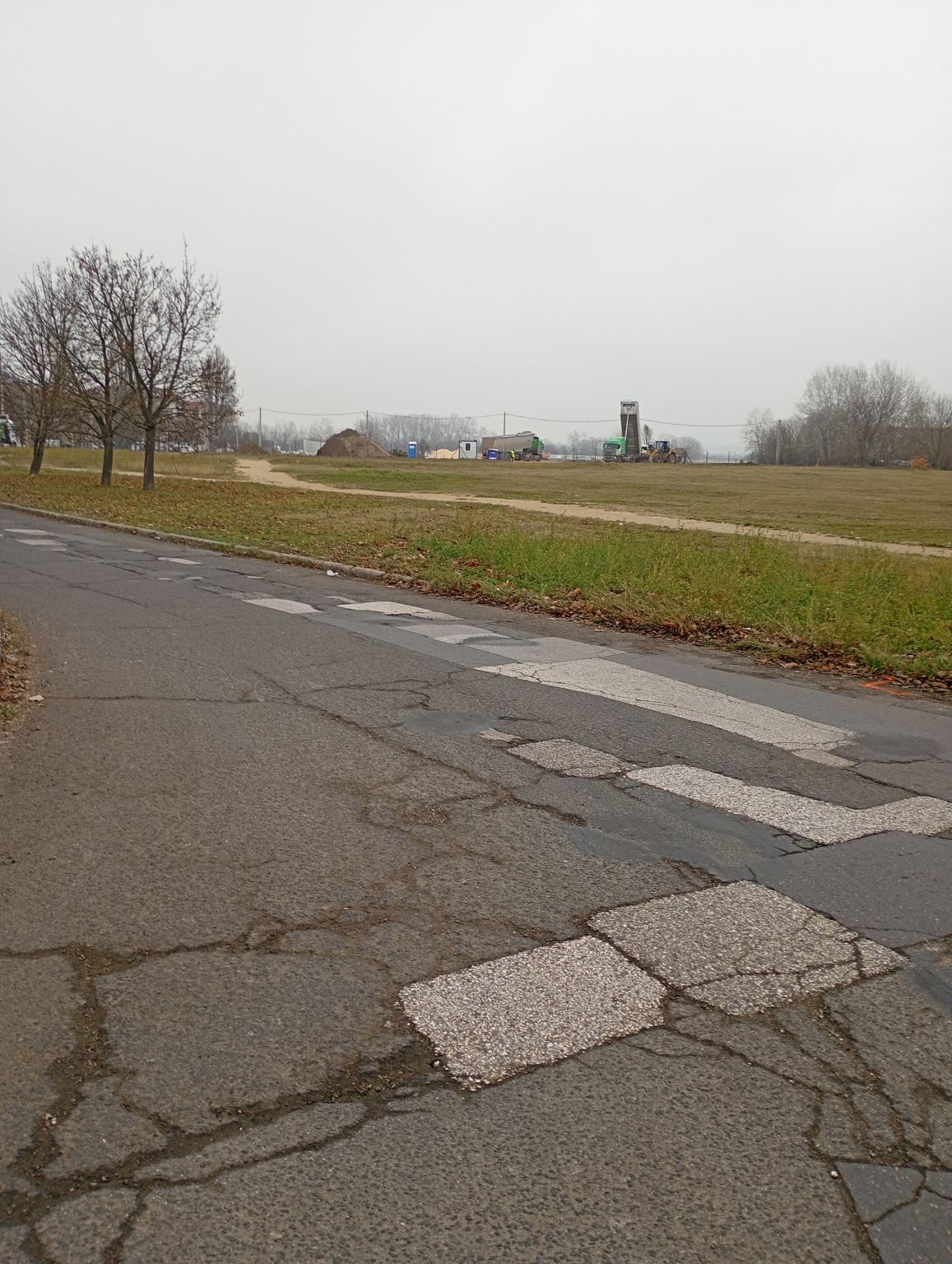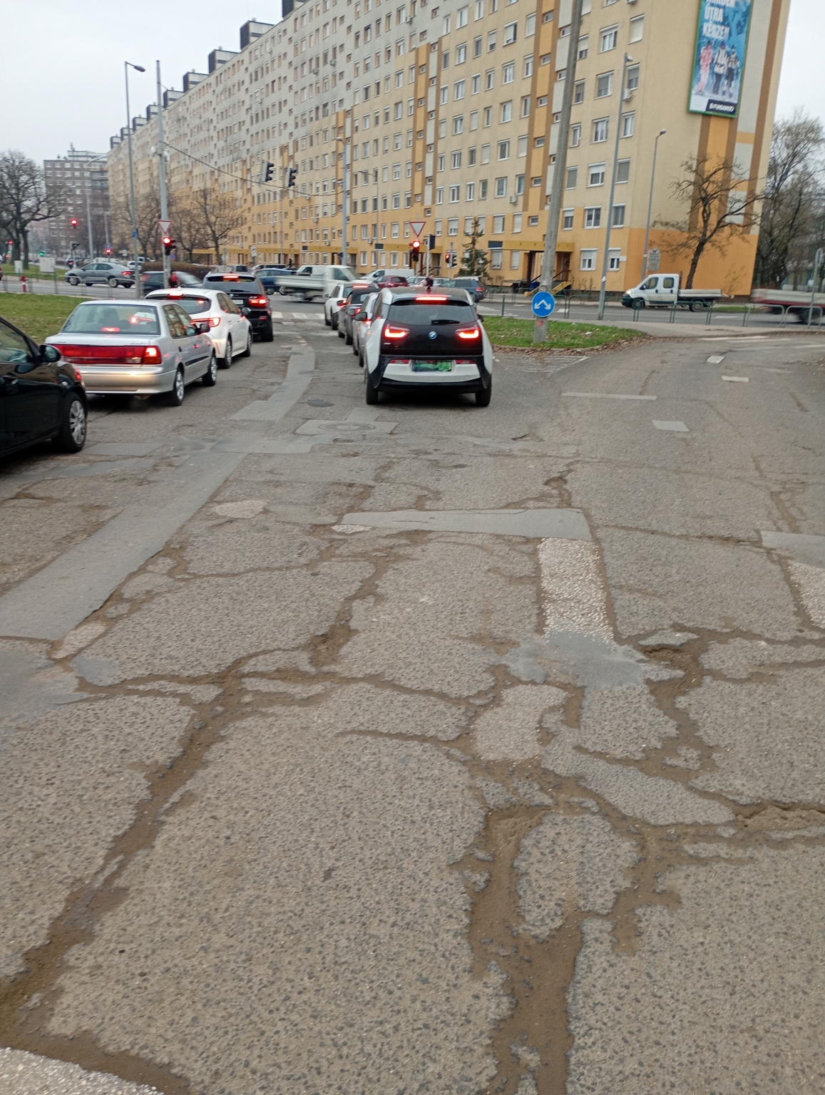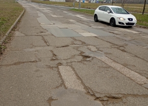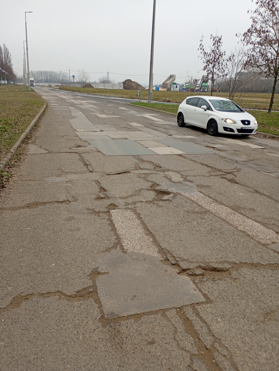 Kérem az illetékest, hogy a képen látható, rengeteg helyen toldozott-foldozott útszakaszt burkolják újra!