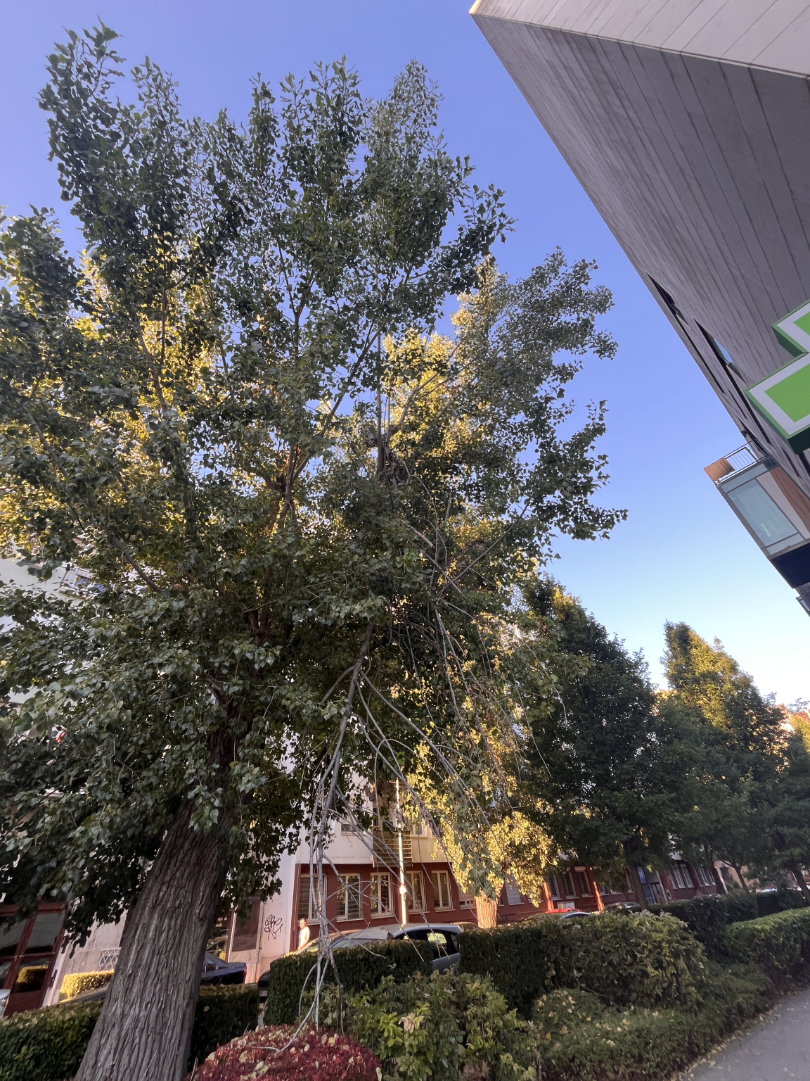 A váli útca 5 számmal szemben fáról leszakadt ág” több száz kiló “ fönt akadt a fán.