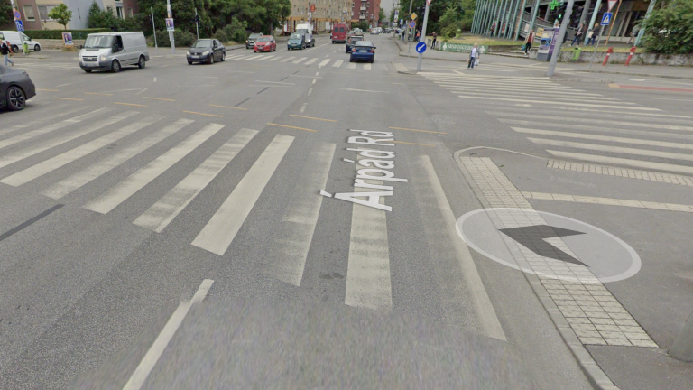 Társaságunk a IV. ker. Árpád út – Rózsa utca csomópontban a sávelhúzásokat a burkolati jelek újrafestésével és a korábban eltávolított terelővonalak lemarásával tervezi helyreállí...