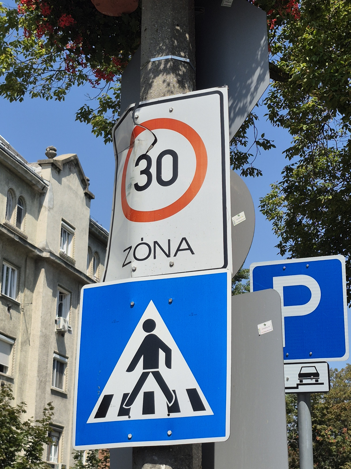 A közlekedési tábla meghajlott, szétnyílt.