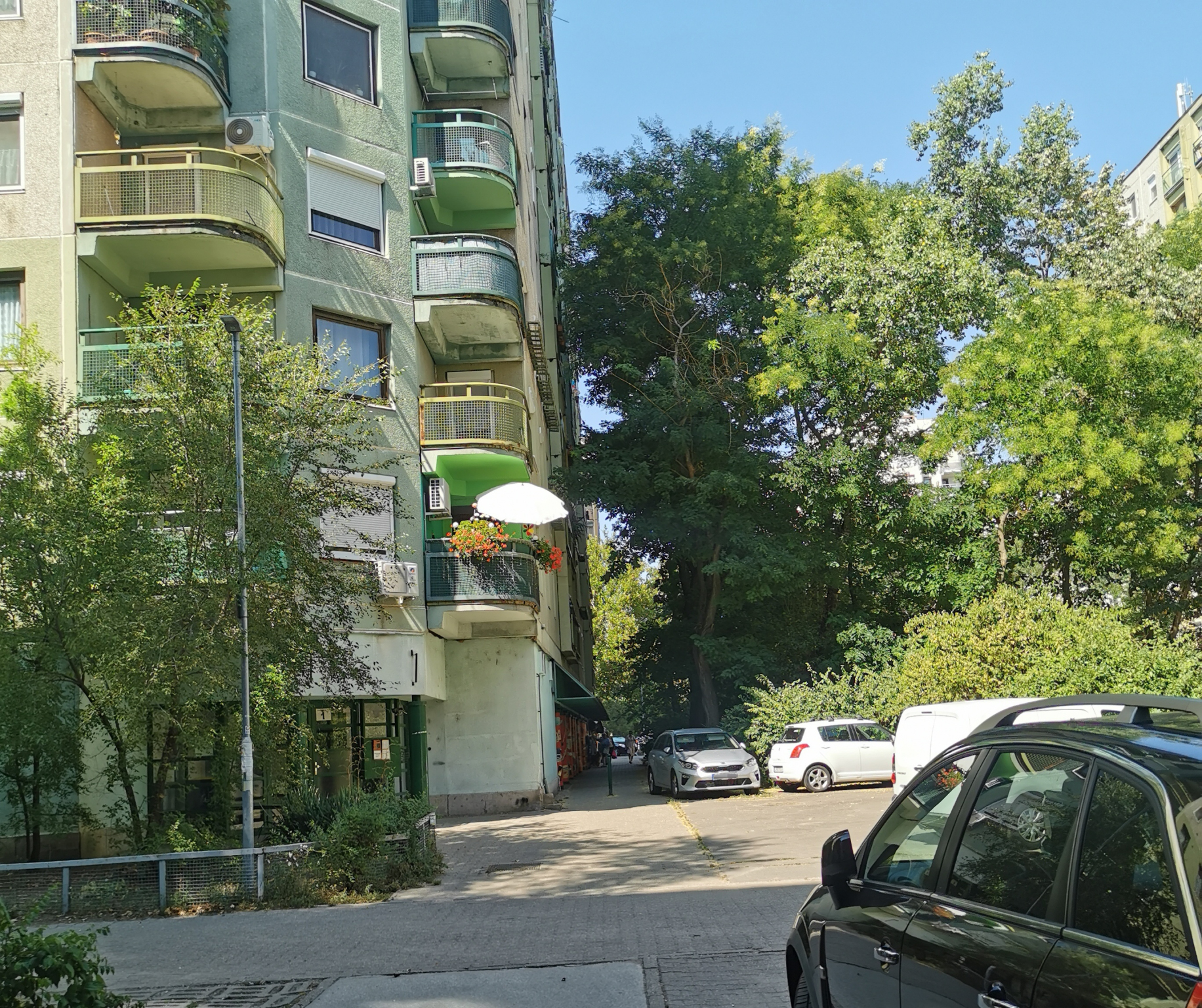 A képen látható társasházra ránőtt teljesen a mellette álló fa és szélben ütögetik az ágai az ablakokat. Szeretnénk kérni a balesetveszély elhárítását, a fa gallyazását, visszanyírását, hogy ne érjen az ablakokhoz viharba se az ága.