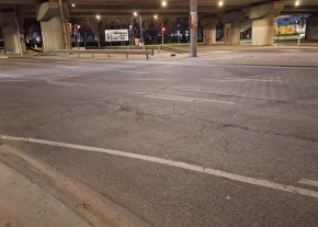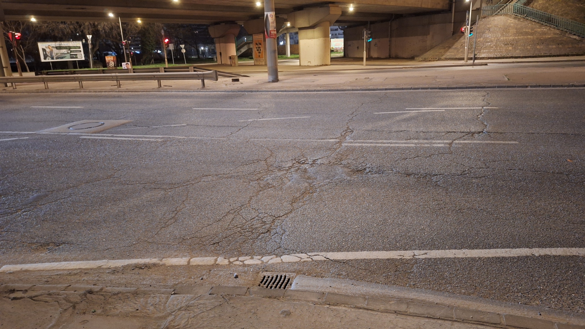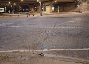 A Közvágóhídnál a Rákóczi híd lehajtójánál van egy kátyú a Soroksári úton.