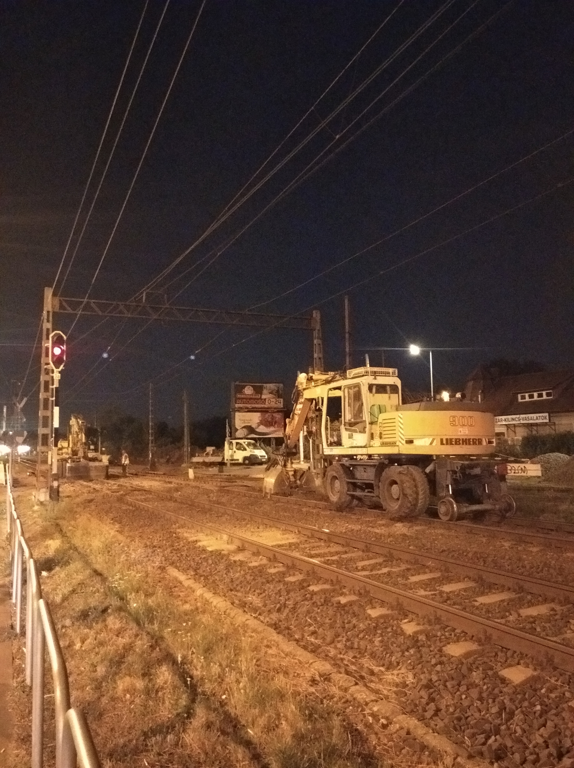 A hév síneken felújítás folyik. A Thököly útnál a Veres Péter úti buszmegállót csak a munkagépek között áthaladva lehet megközelíteni. A munkálatokhoz használt dolgok szanaszét hevernek a környéken. Ez így balesetveszélyes. Főleg este a sötétben.