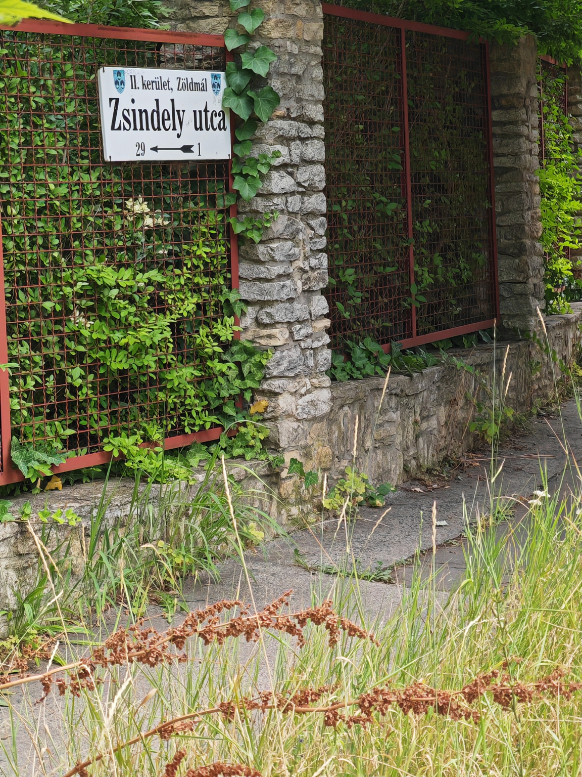 Nyakig érő gaz a Ferenchegyi út és Zsindely utca sarkán, tulajdonos által nincs karbantartva a járda növényzete.