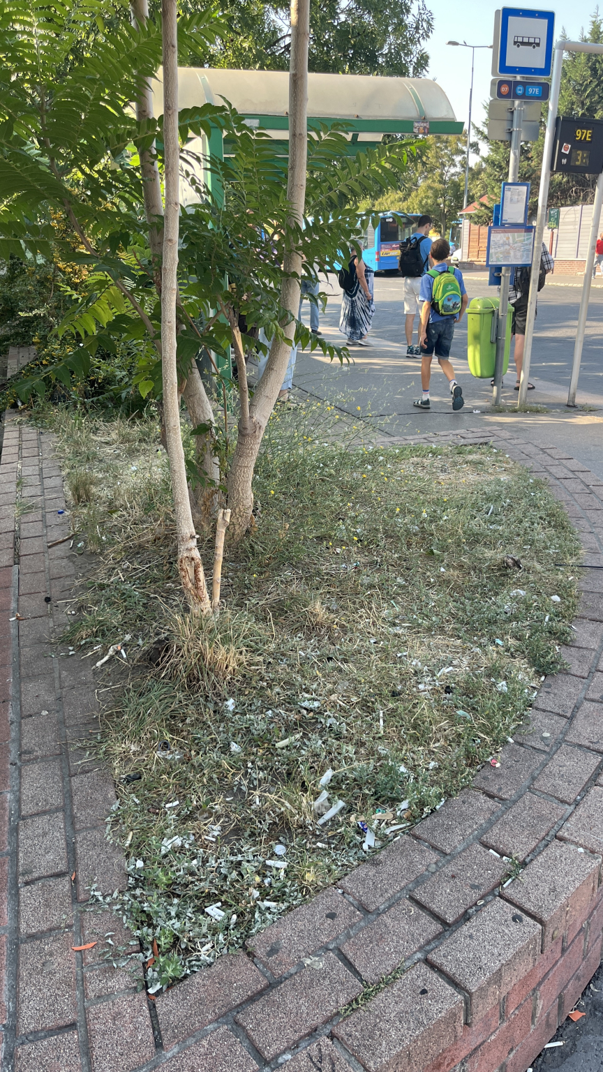 Az Örs vezér terén a kőbányai buszfordulóban áldatlan állapotok uralkodnak. Elsősorban szegélyjel körbeölelt zöldfelületeket kellene alaposan kitakarítani, mert évek óta gyűlik a szemét, a cigicsikkek és minden egyéb szennyeződés. Sok helyen méteres gazzal van benőve a terület, emiatt nem átlátható, nehezíti a tájékozódást. Ahol éppen nem gaz van, ott teljesen kopár, kiszáradt a fű, a fák is alig kapnak vizet. Ha a gazolás sikerült, javaslok egy alapos öntözést és esetleg virágok ültetését. Előre is nagyon köszönöm!