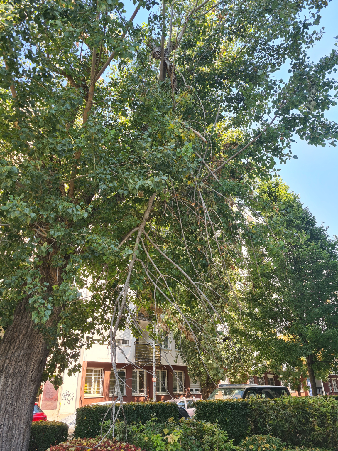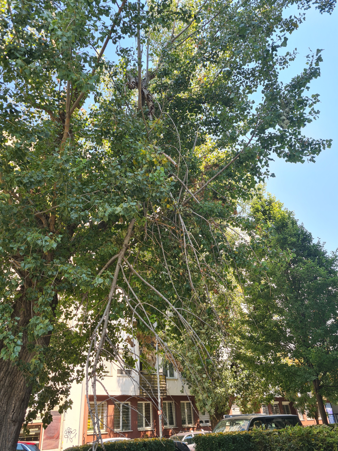 1117 Váli utca 5. előtt, a sarkon egy nagy faág letört és a fán lóg, de nem tartja semmi, csak a többi ág. Le kell emelni onnan , mert balesetveszélyes egy szeles időben.